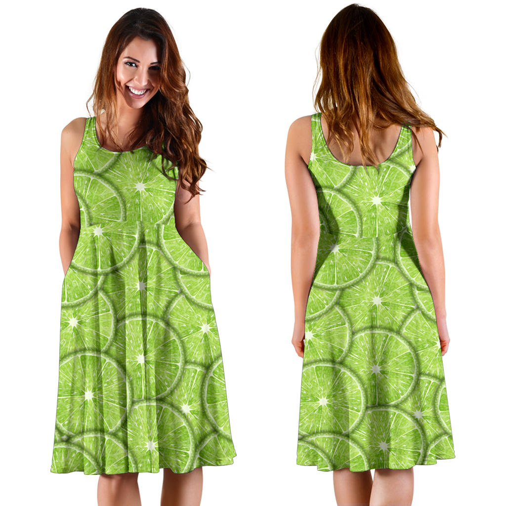 Slices Of Lime Pattern Sleeveless Midi Dress