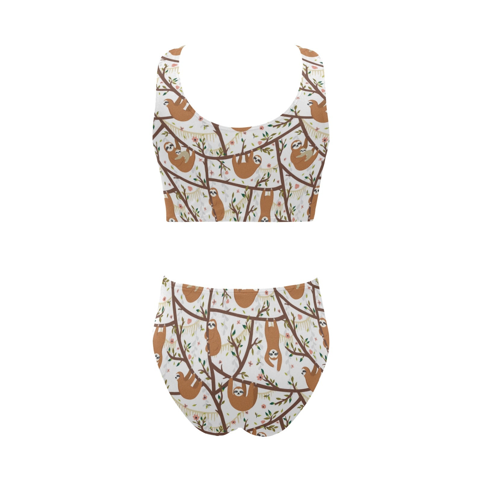 Sloths hanging on the tree pattern Chest Bowknot High Waisted Bikini Swimsuit