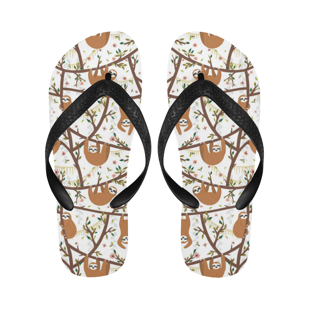 Sloths hanging on the tree pattern Unisex Flip Flops is a uniqued design and limited item. It made to order, hand printed, and sewn with love in our factory.