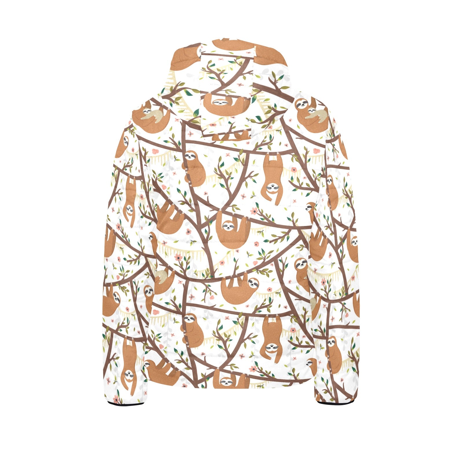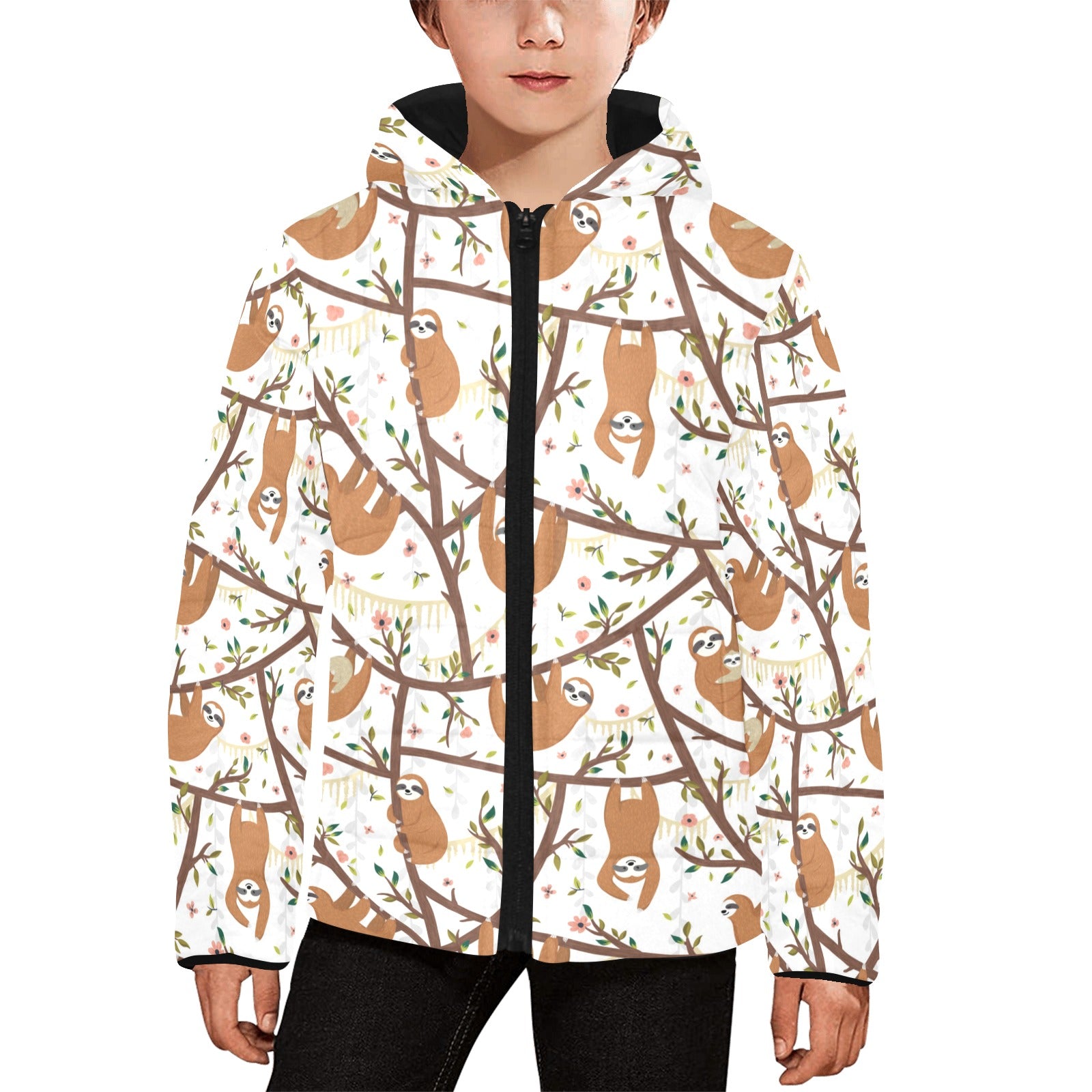 Sloths hanging on the tree pattern Kids' Boys' Girls' Padded Hooded Jacket