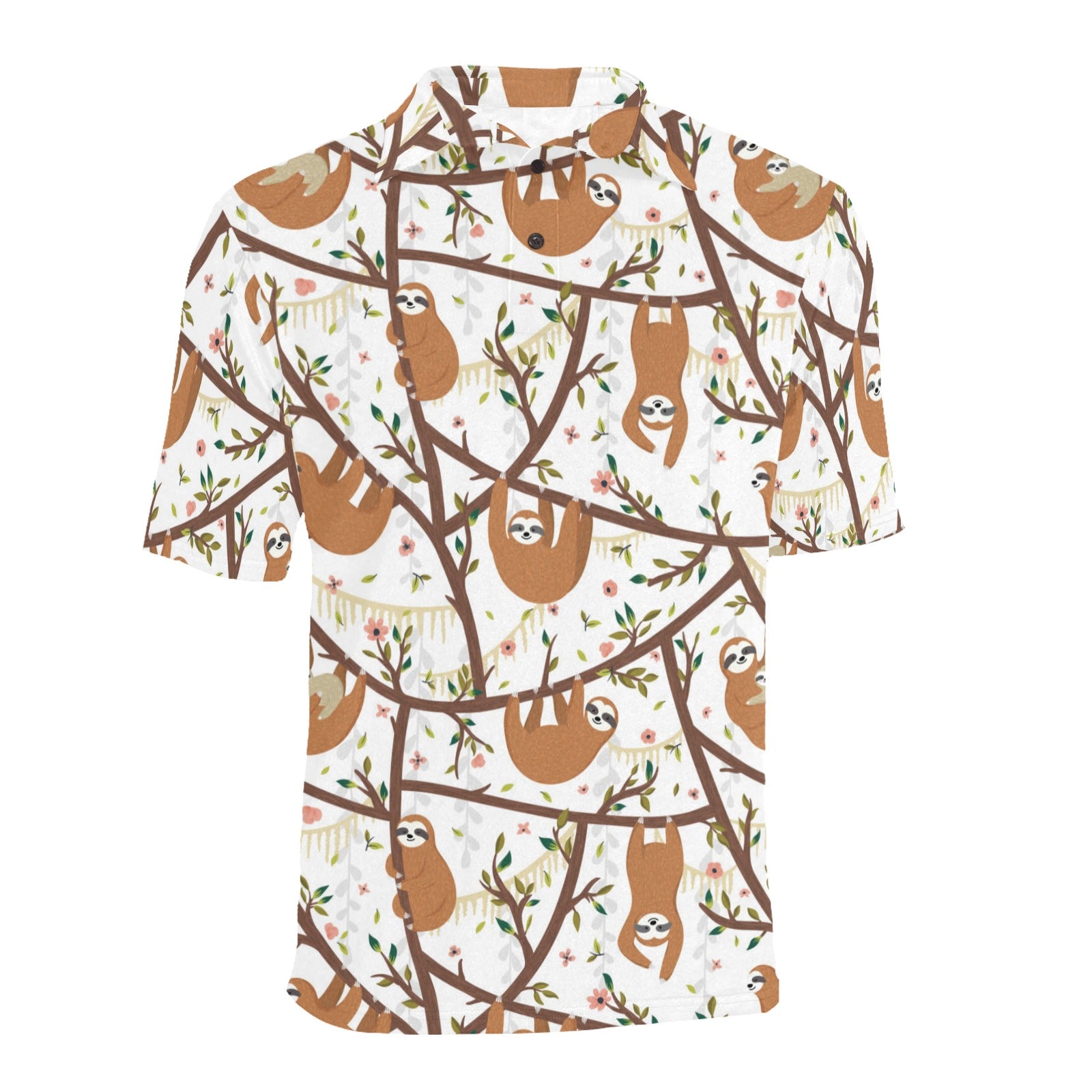 Sloths hanging on the tree pattern Men's All Over Print Polo Shirt