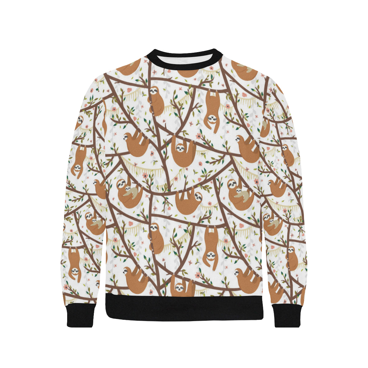 Sloths hanging on the tree pattern Men's Crew Neck Sweatshirt is a uniqued design and limited item. It made to order, hand printed, and sewn with love in our factory.