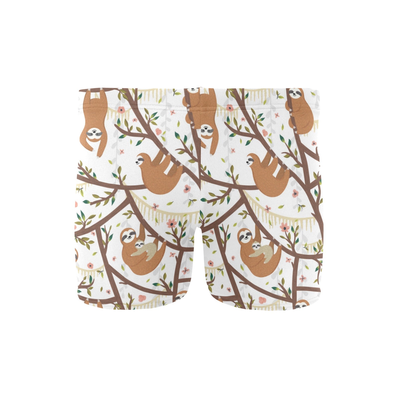 Sloths hanging on the tree pattern Men's Swimming Trunks