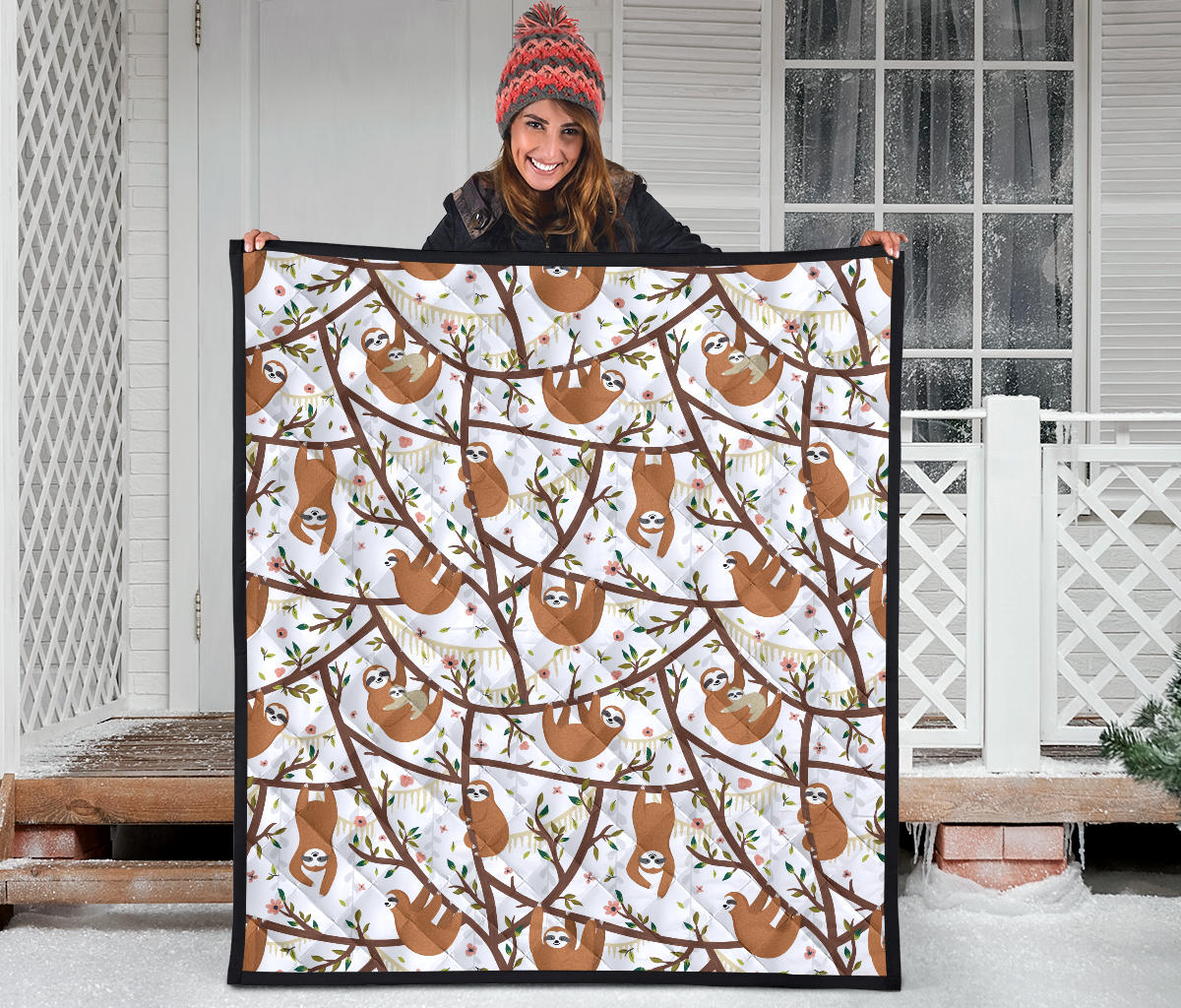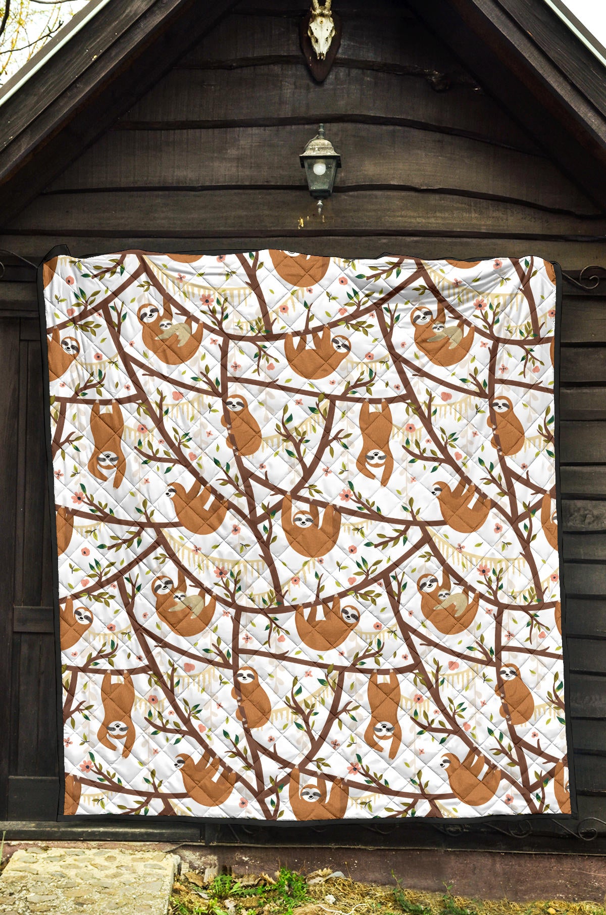 Sloths Hanging On The Tree Pattern Premium Quilt is a uniqued design and limited item. It made to order, hand printed, and sewn with love in our factory.