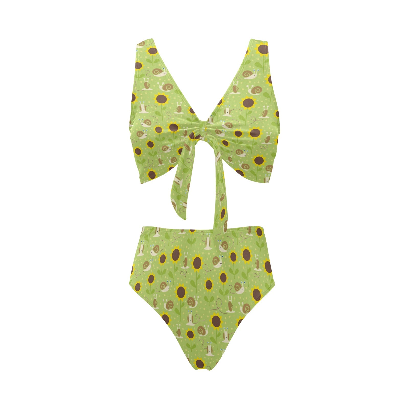 Snail Pattern Print Design 01 Chest Bowknot High Waisted Bikini Swimsuit