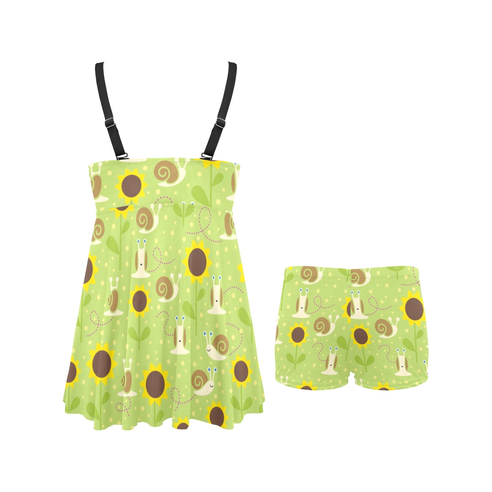 Snail Pattern Print Design 01 Chest Sexy Pleated Two Piece Swim Dress