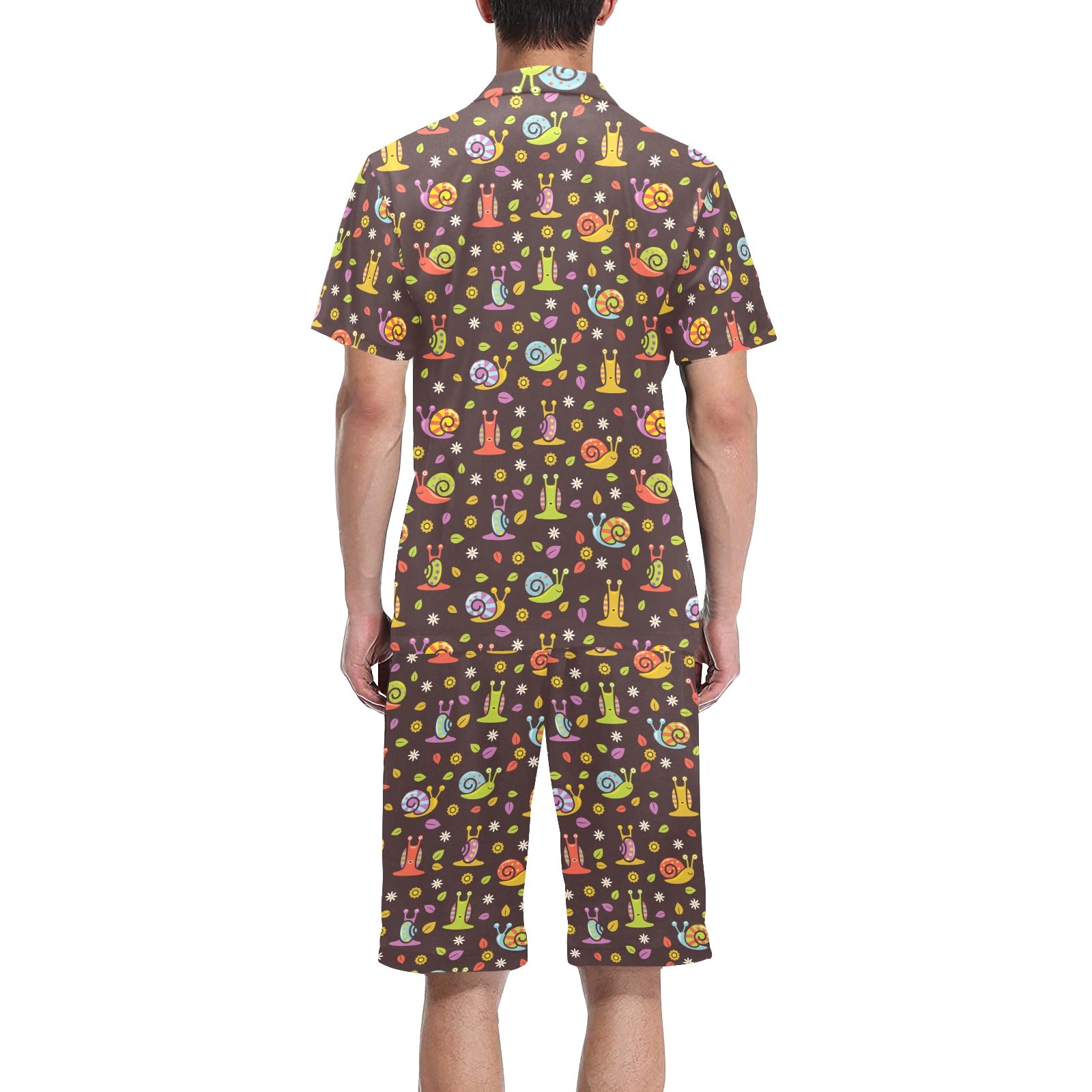 Snail Pattern Print Design 02 Men's V-Neck Short Pajama Set