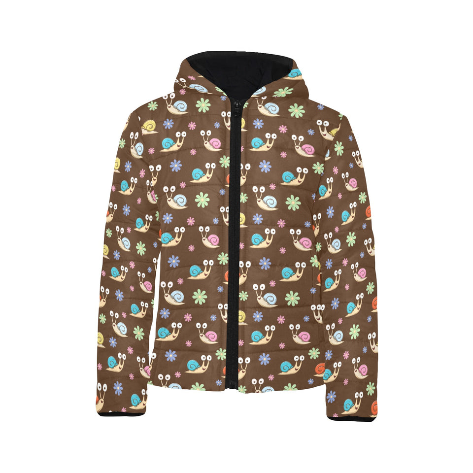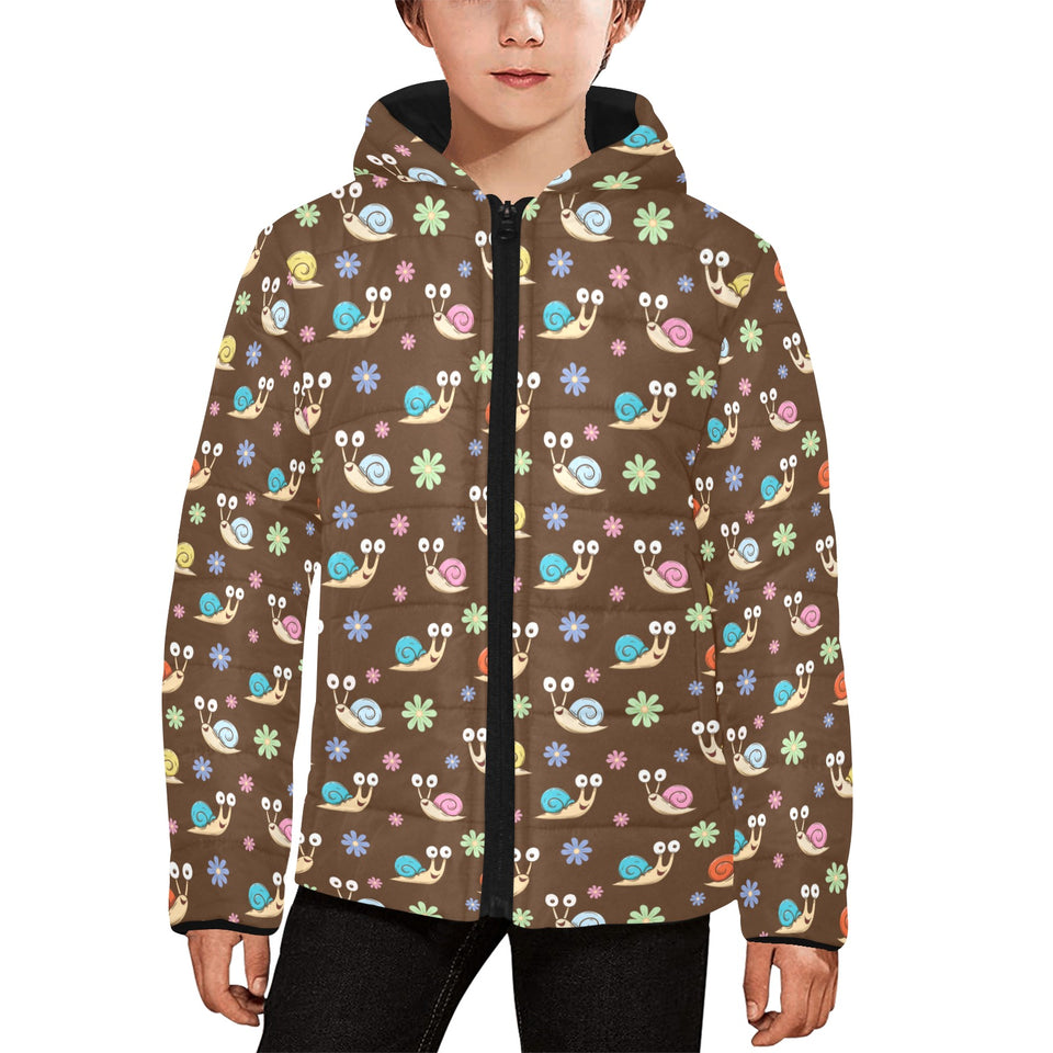 Snail Pattern Print Design 03 Kids' Boys' Girls' Padded Hooded Jacket