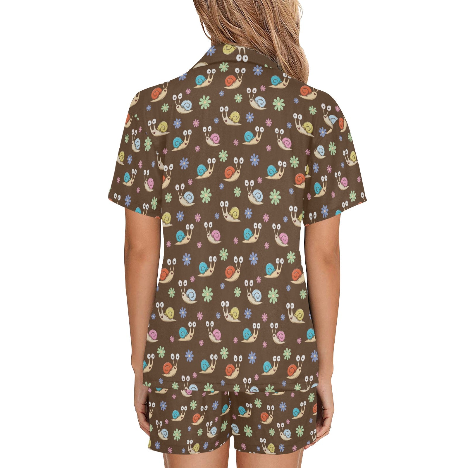 Snail Pattern Print Design 03 Women's V-Neck Short Pajama Set