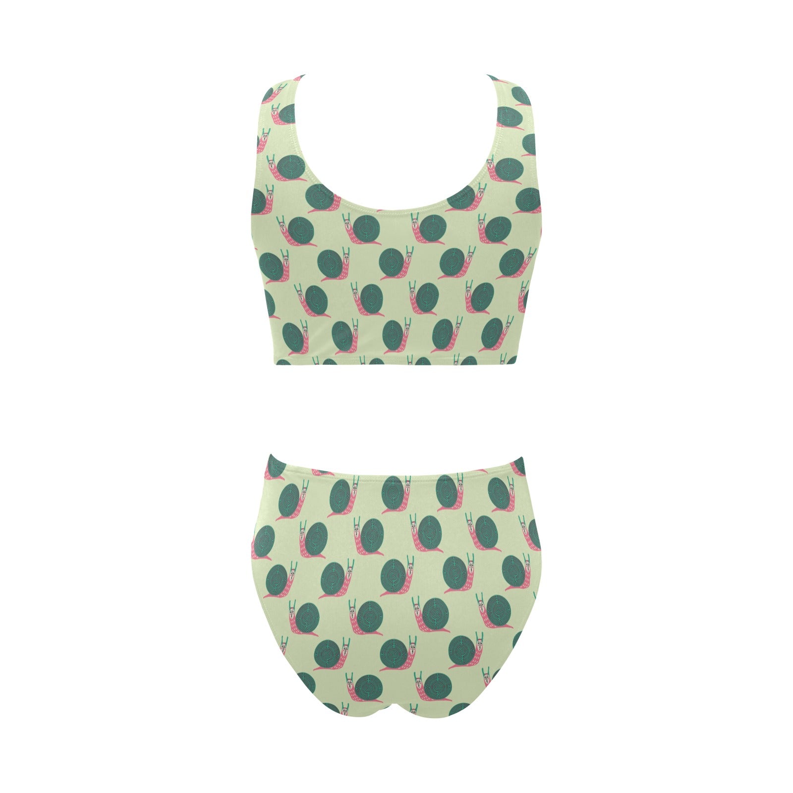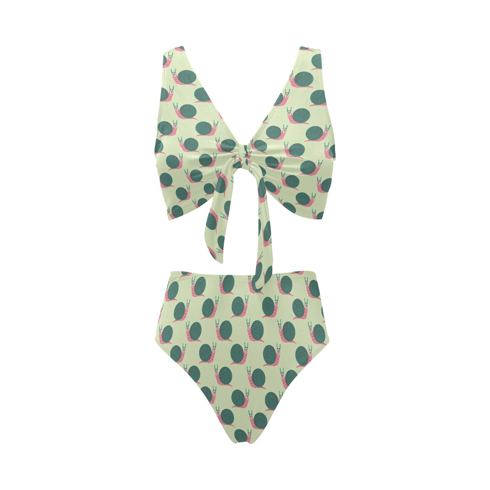 Snail Pattern Print Design 04 Chest Bowknot High Waisted Bikini Swimsuit