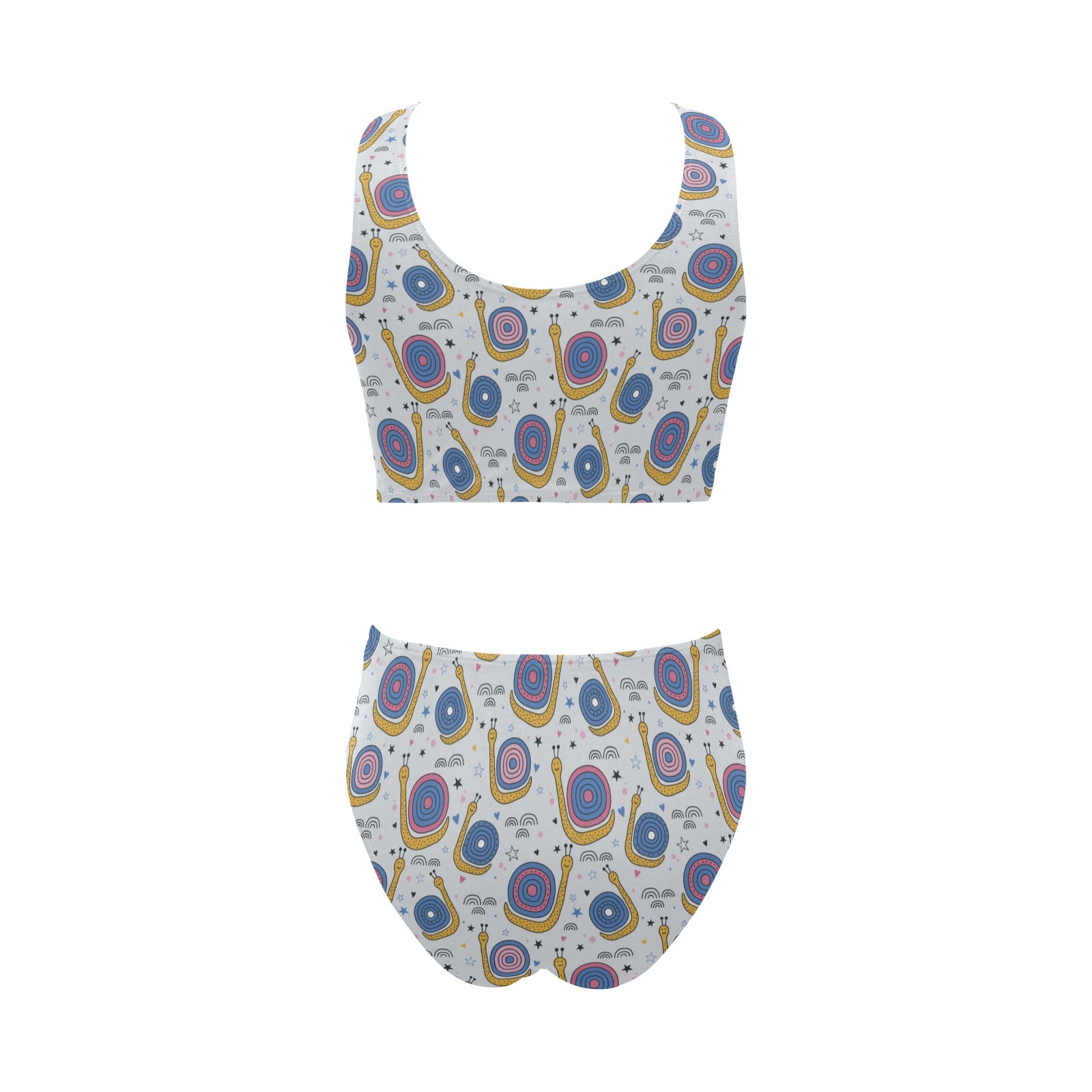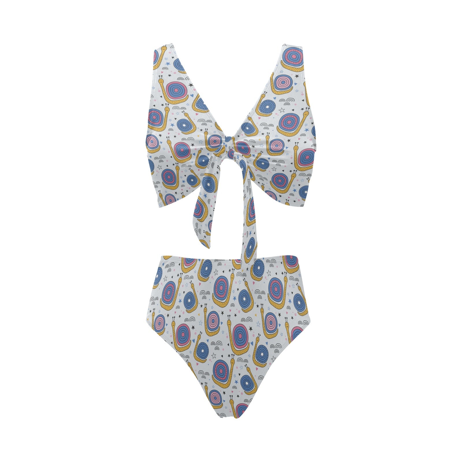 Snail Pattern Print Design 05 Chest Bowknot High Waisted Bikini Swimsuit