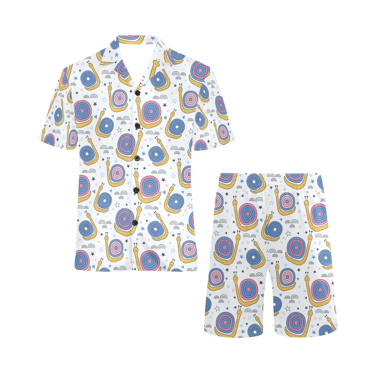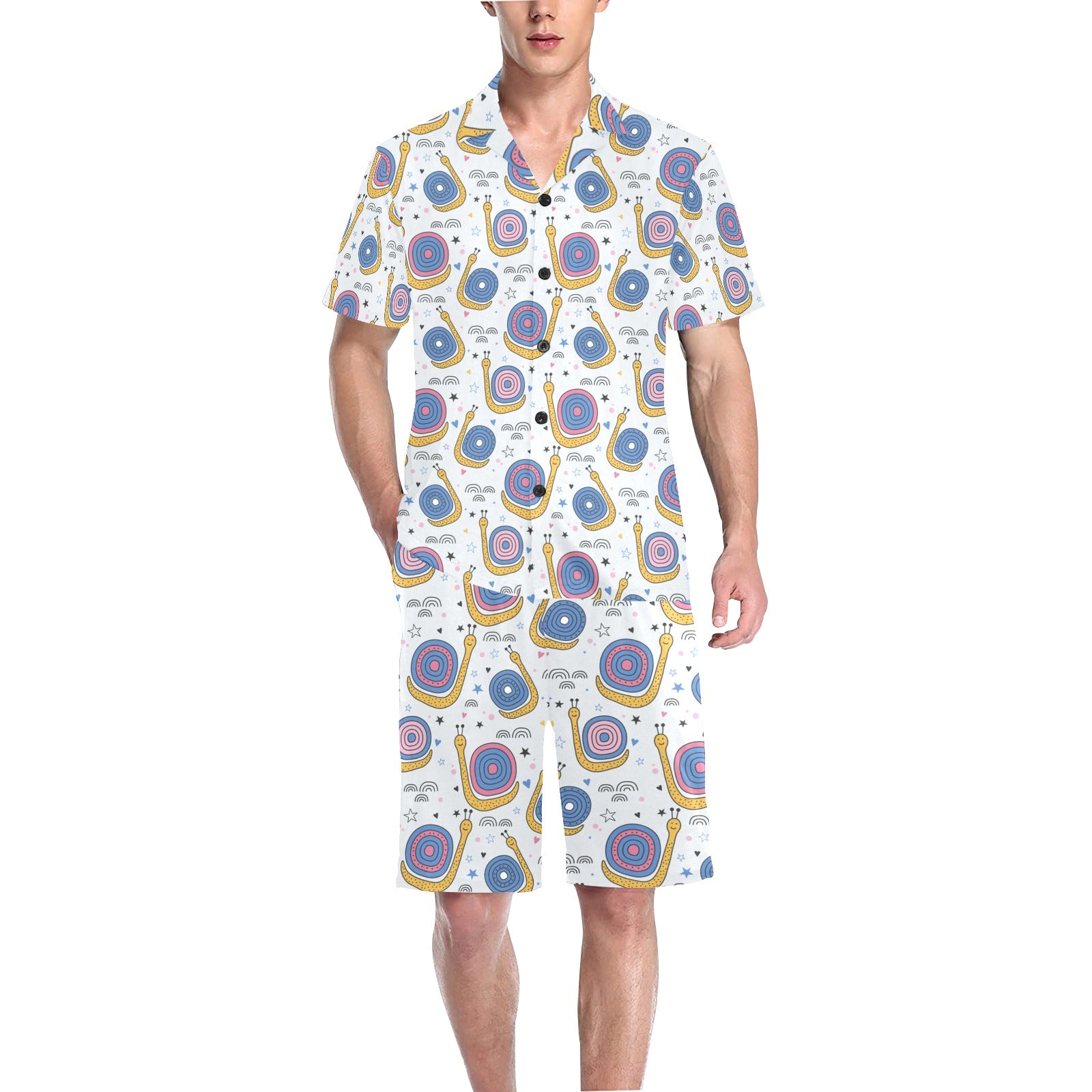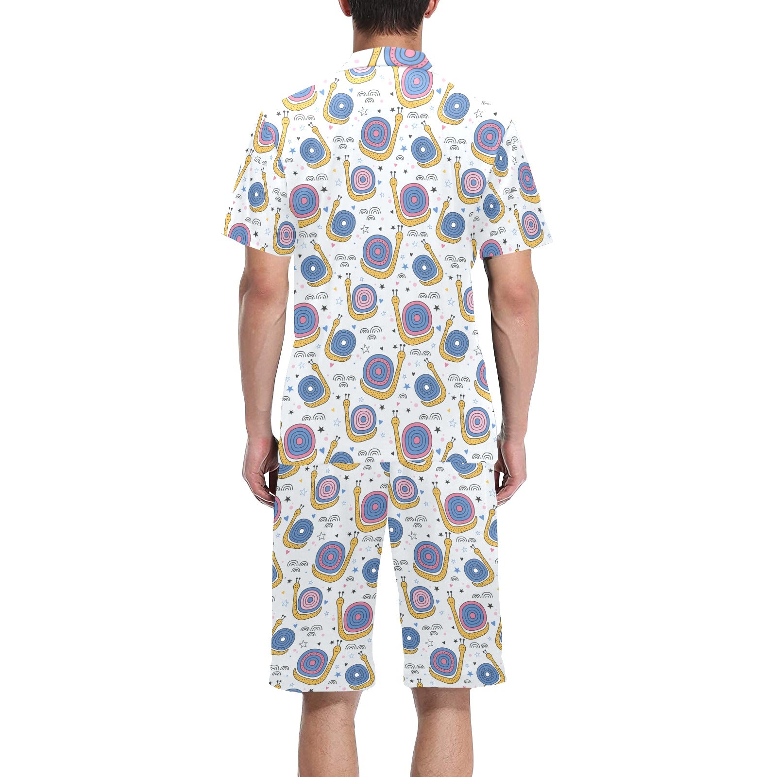 Snail Pattern Print Design 05 Men's V-Neck Short Pajama Set