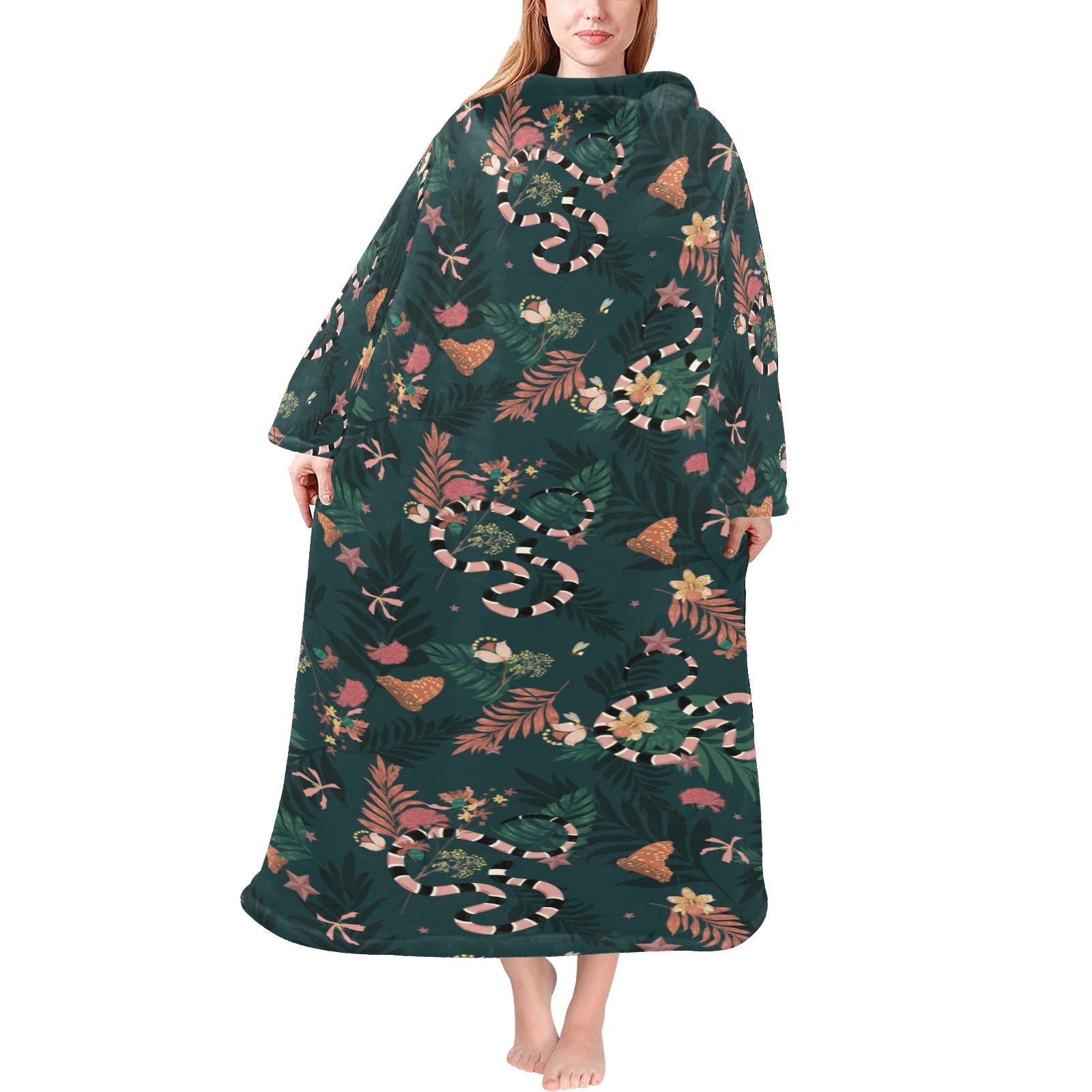 Snake forest pattern Blanket Robe with Sleeves