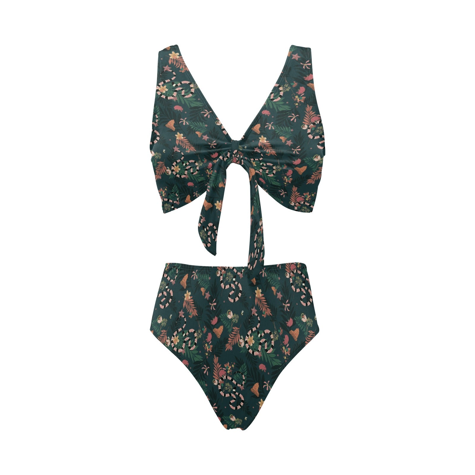 Snake forest pattern Chest Bowknot High Waisted Bikini Swimsuit