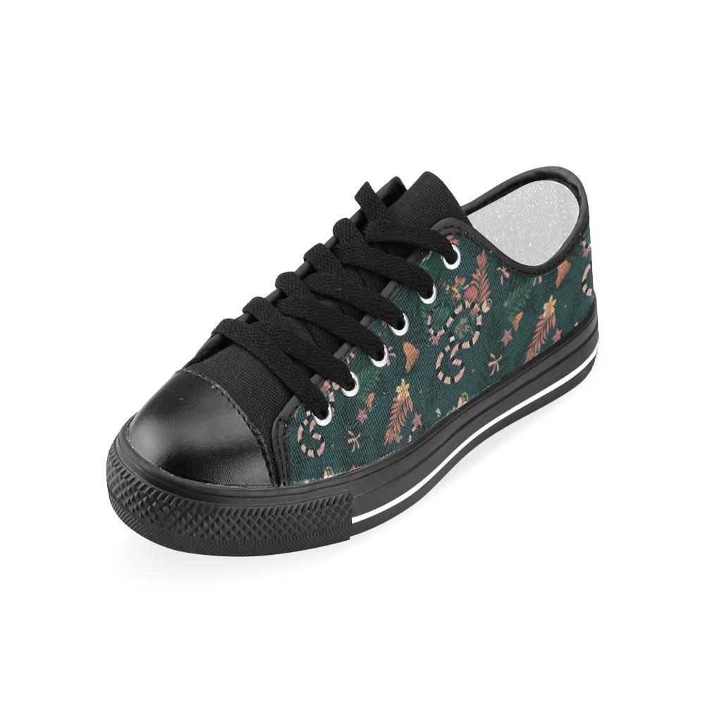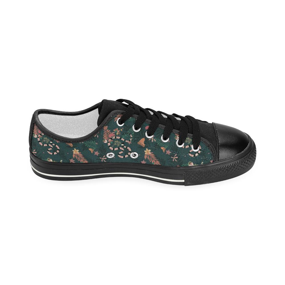 Snake forest pattern Kids' Boys' Girls' Low Top Canvas Shoes Black