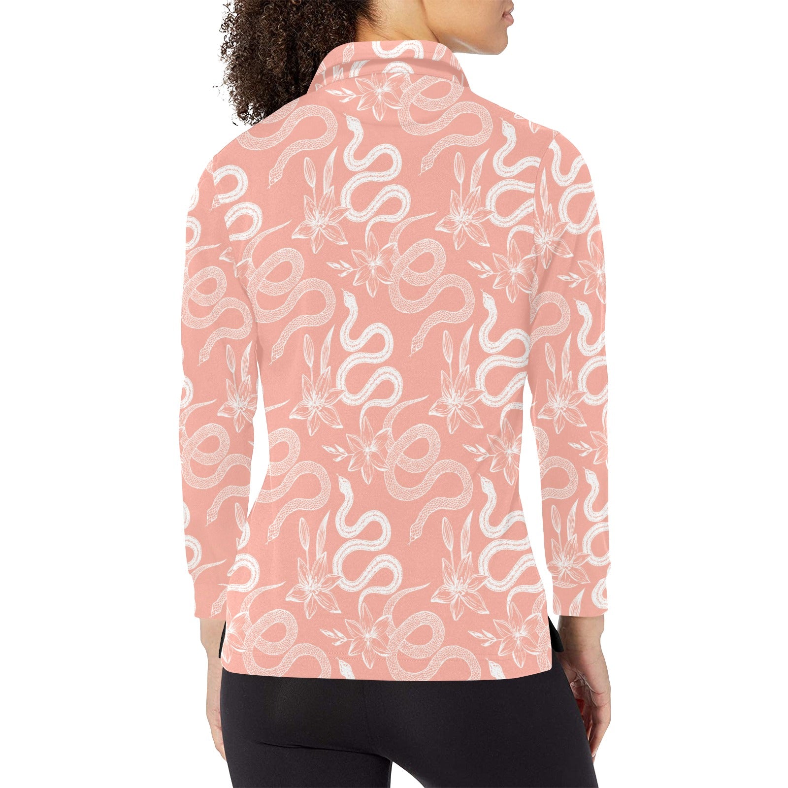 Snake lilies flower pattern Women's Long Sleeve Polo Shirt