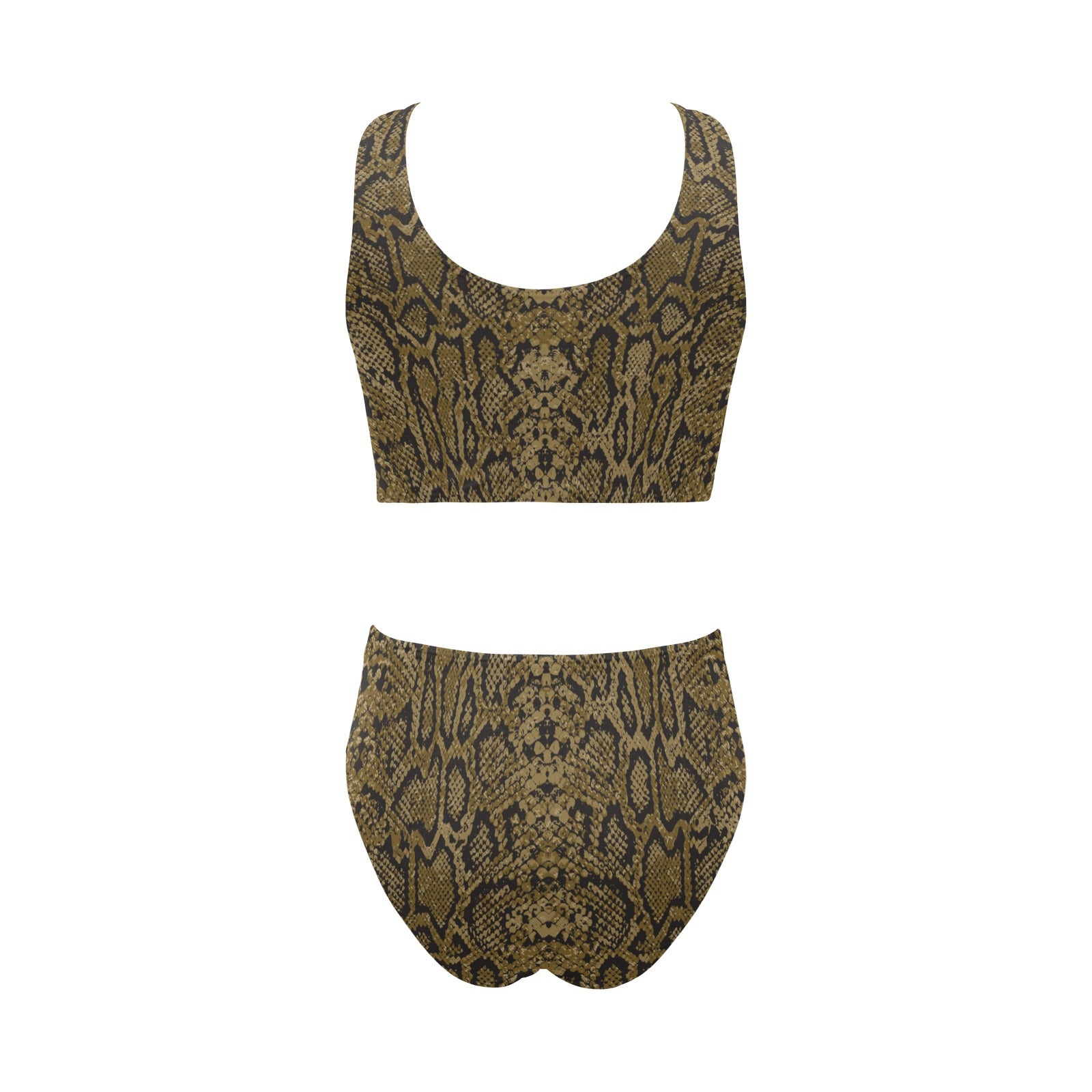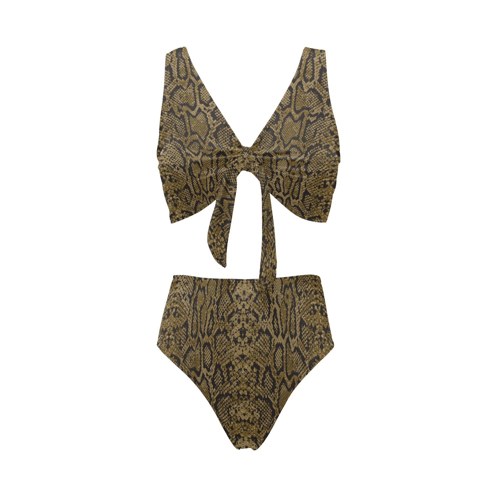 Snake skin pattern Chest Bowknot High Waisted Bikini Swimsuit
