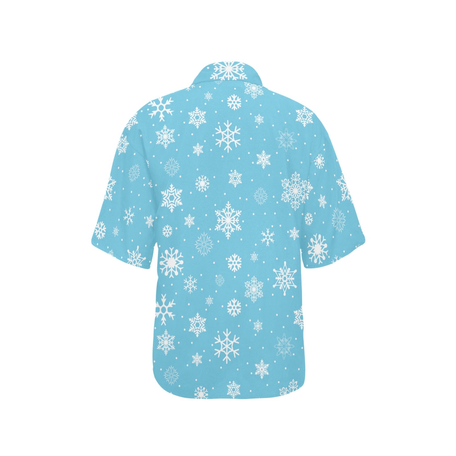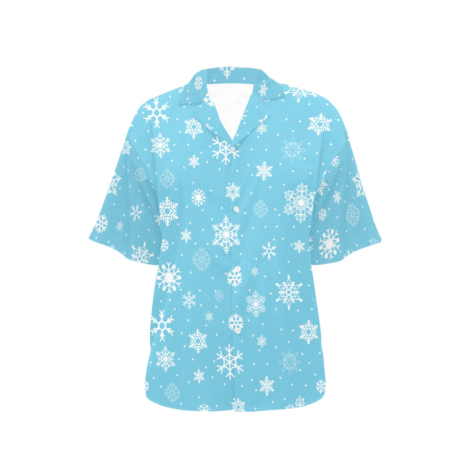 Snowflake pattern blue background Women's All Over Print Hawaiian Shirt