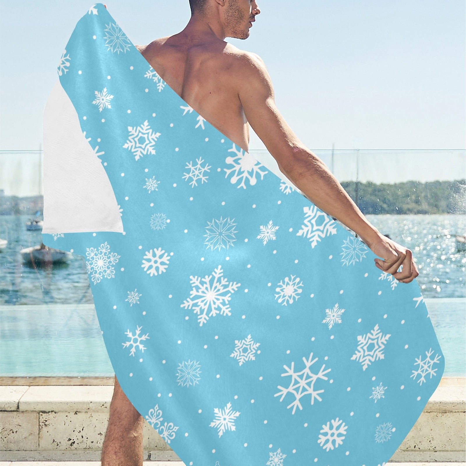 Snowflake pattern blue background Beach Towel