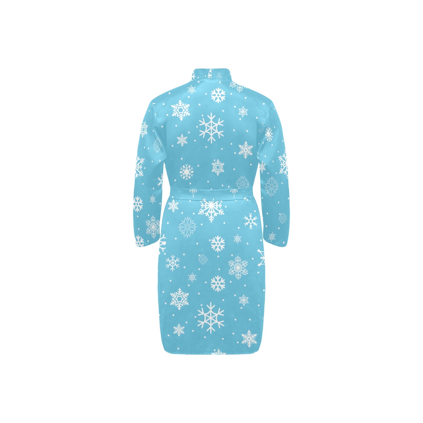 Snowflake pattern blue background Men's Long Sleeve Belted Night Robe