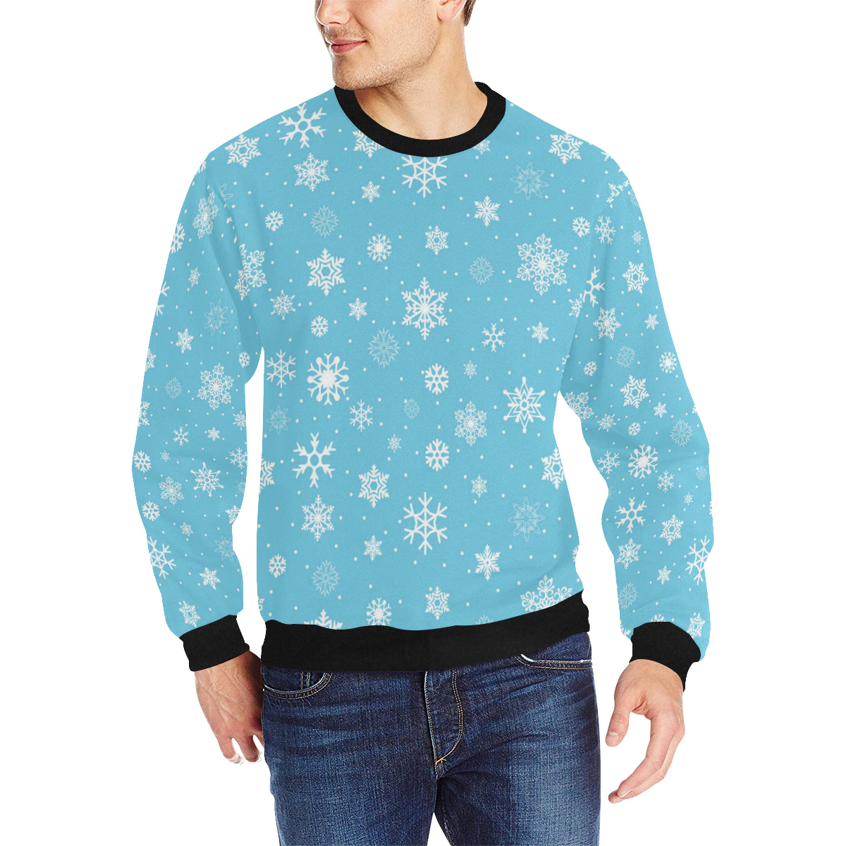 Snowflake pattern blue background Men's Crew Neck Sweatshirt