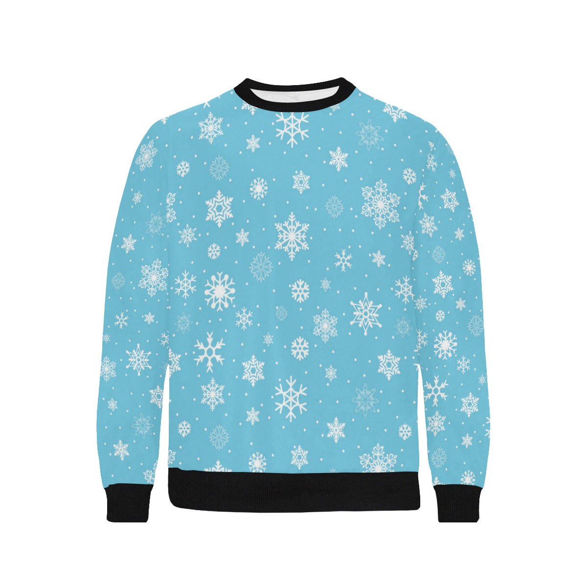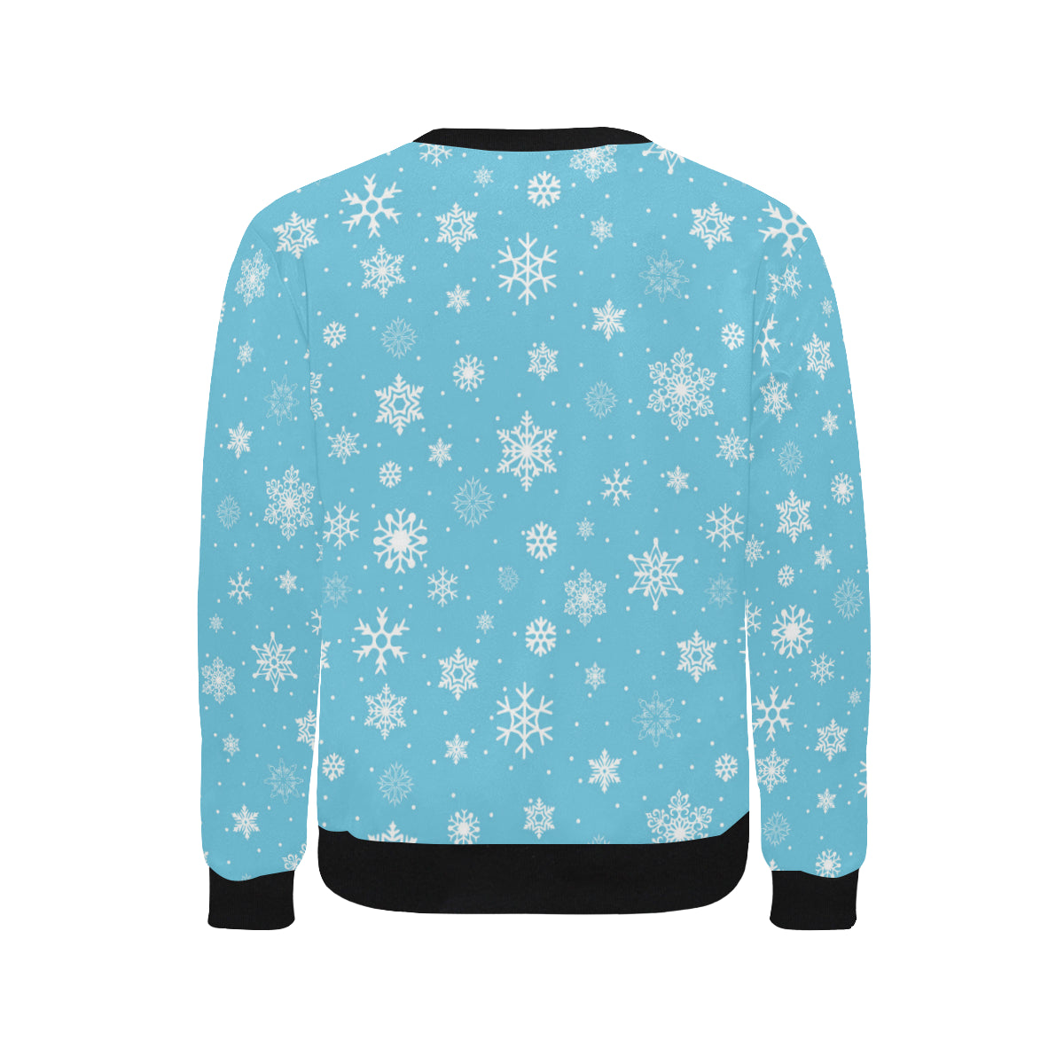 Snowflake pattern blue background Men's Crew Neck Sweatshirt is a uniqued design and limited item. It made to order, hand printed, and sewn with love in our factory.