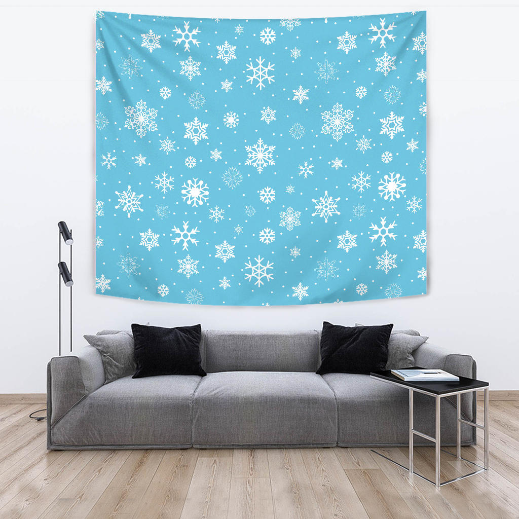 Snowflake pattern blue background Tapestry is a uniqued design and limited item. It made to order, hand printed, and sewn with love in our factory.
