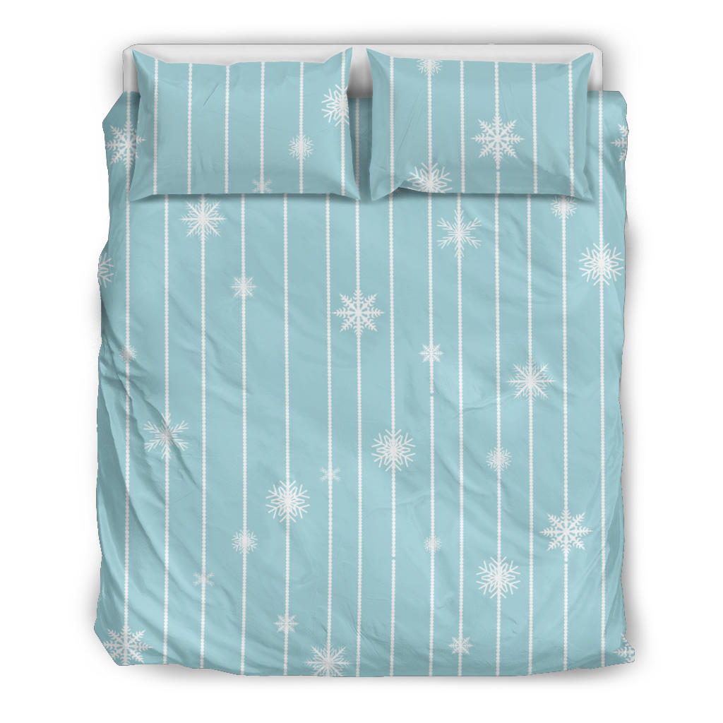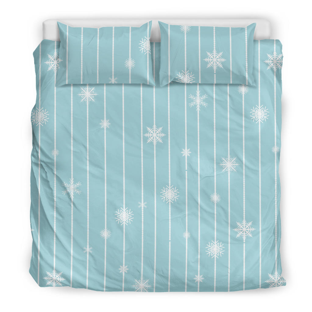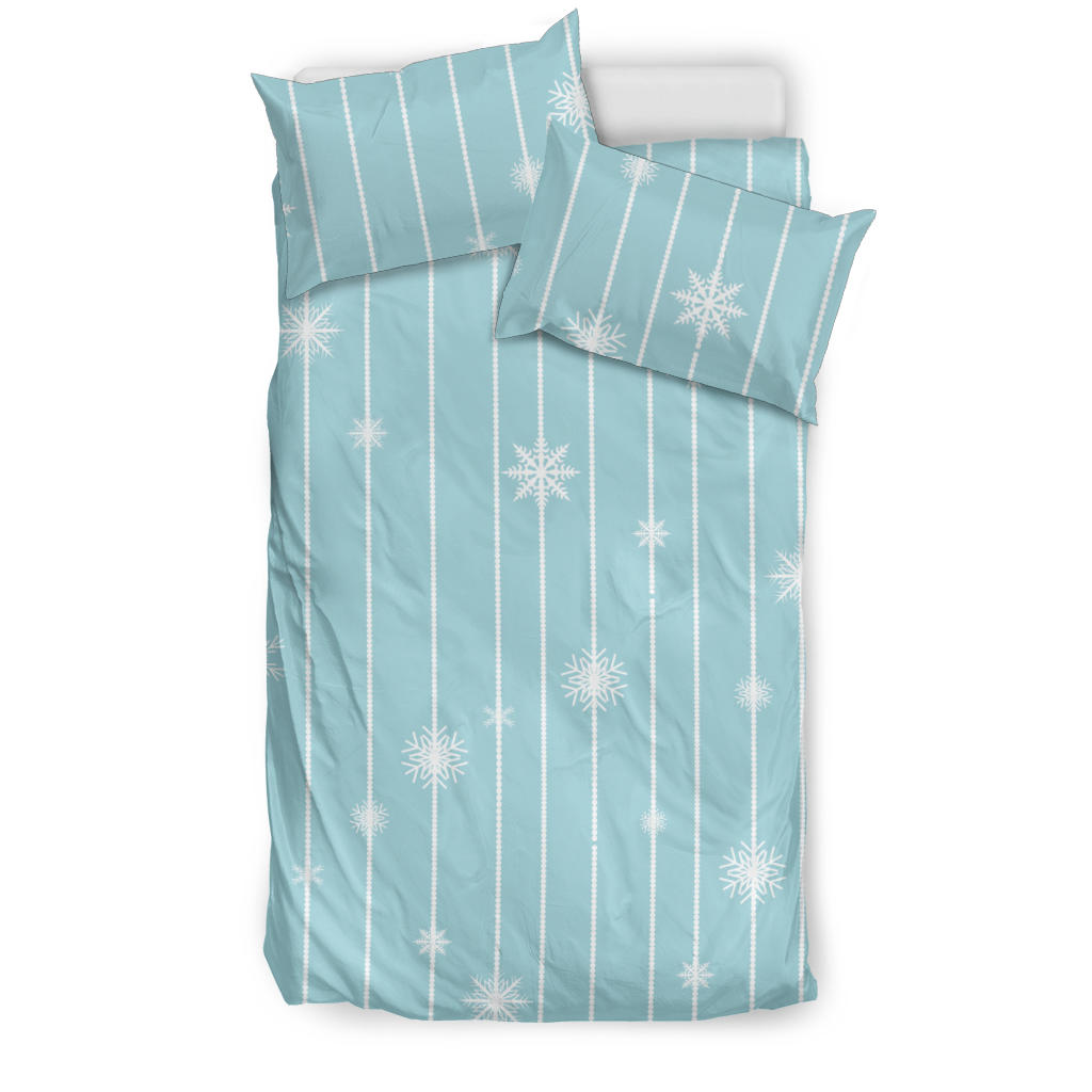 Snowflake pattern blue stripe background Bedding Set is a uniqued design and limited item. It made to order, hand printed, and sewn with love in our factory.