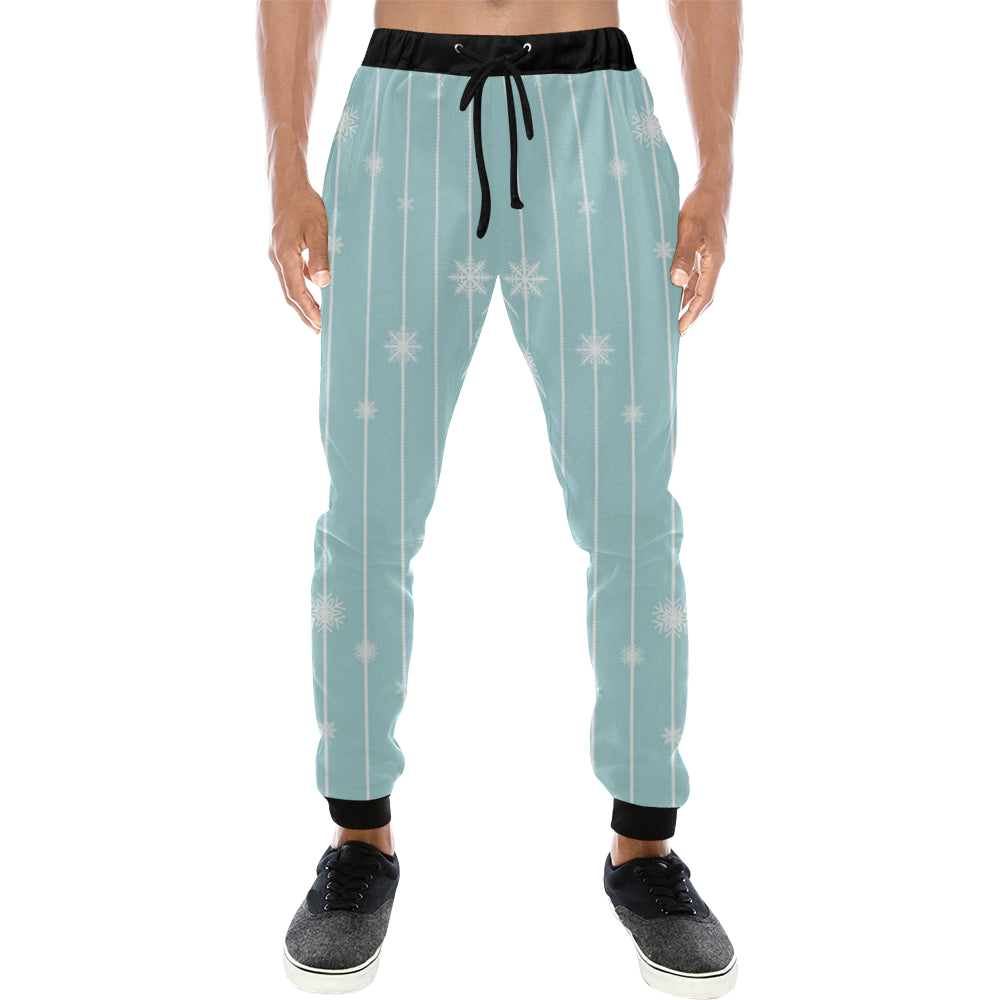 Snowflake pattern blue stripe background Unisex Casual Sweatpants
