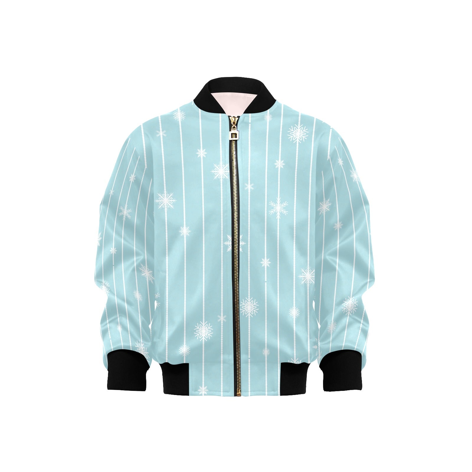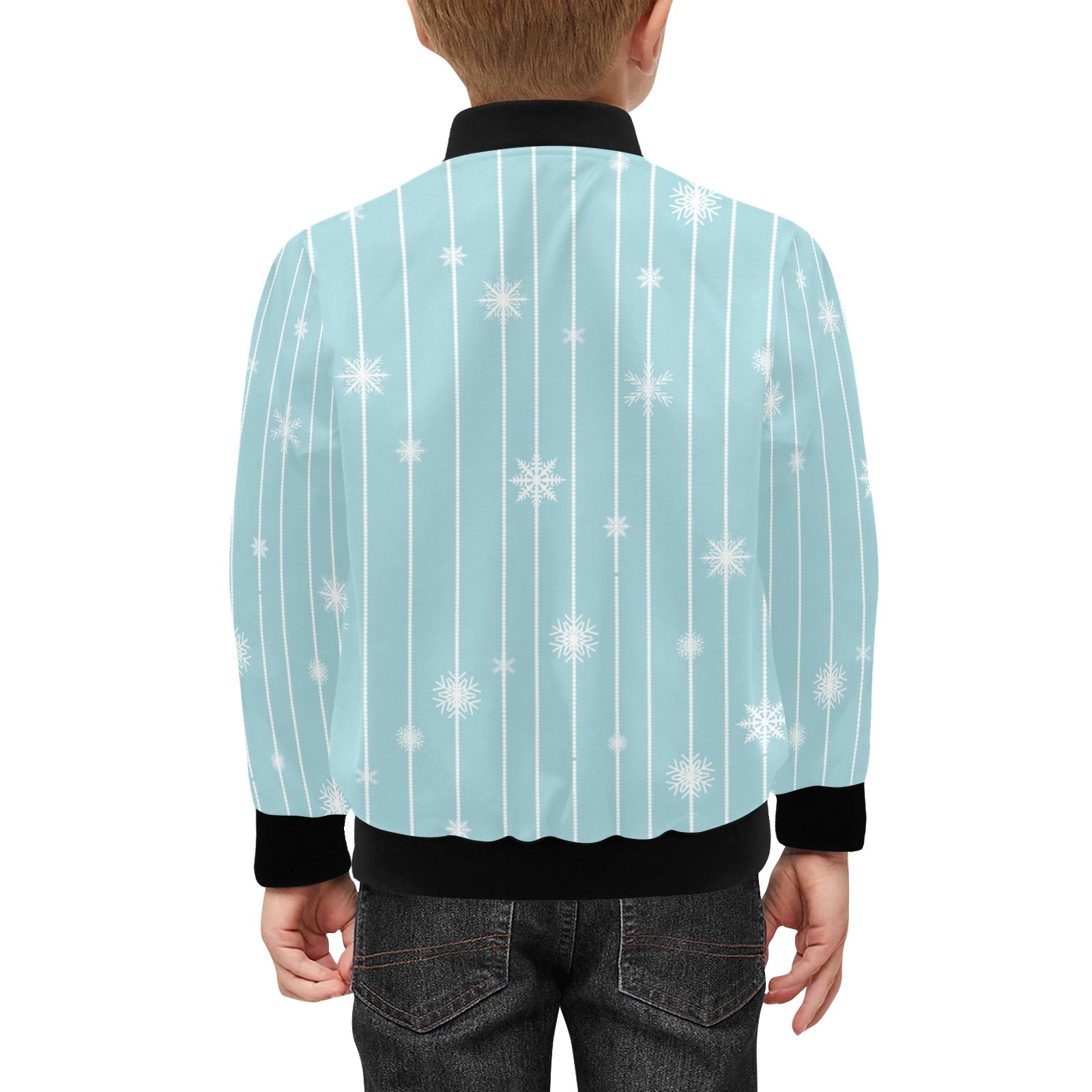 Snowflake pattern blue stripe background Kids' Boys' Girls' Bomber Jacket