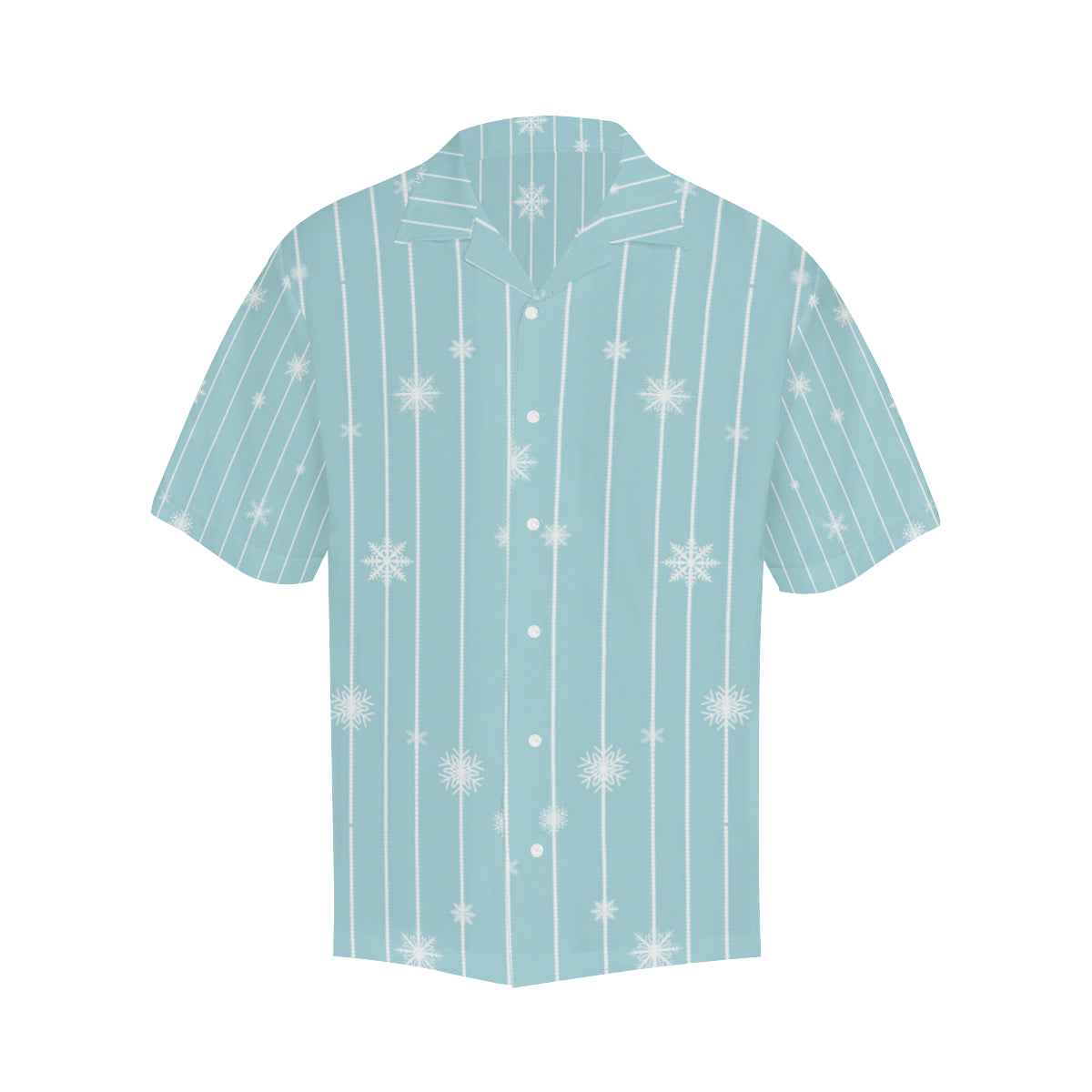 Snowflake pattern blue stripe background Men's All Over Print Hawaiian Shirt is a uniqued design and limited item. It made to order, hand printed, and sewn with love in our factory.