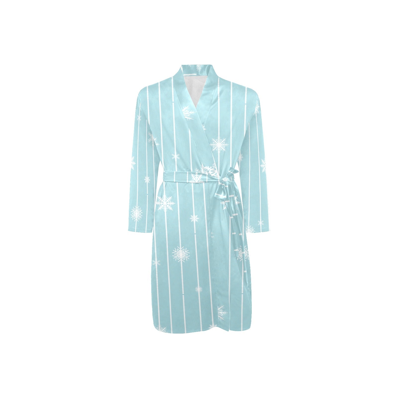 Snowflake pattern blue stripe background Men's Long Sleeve Belted Night Robe