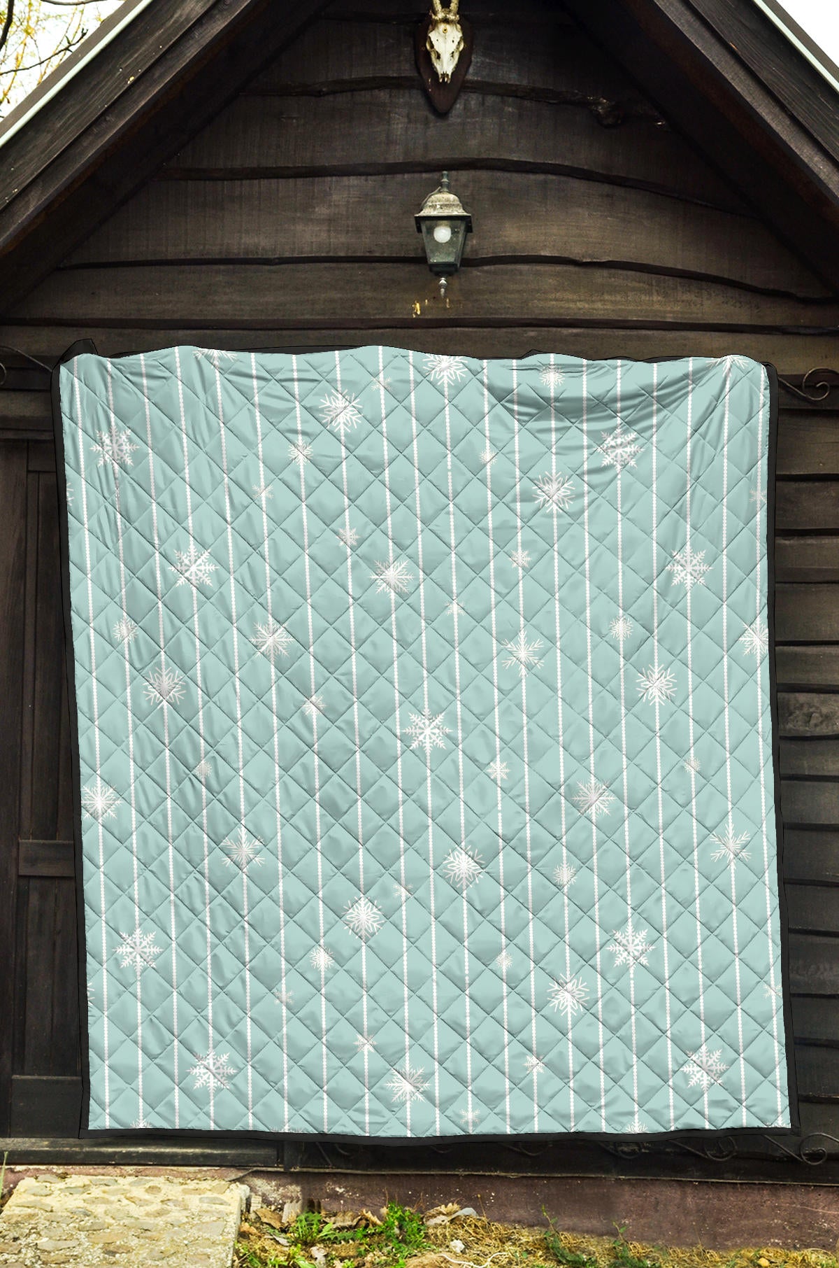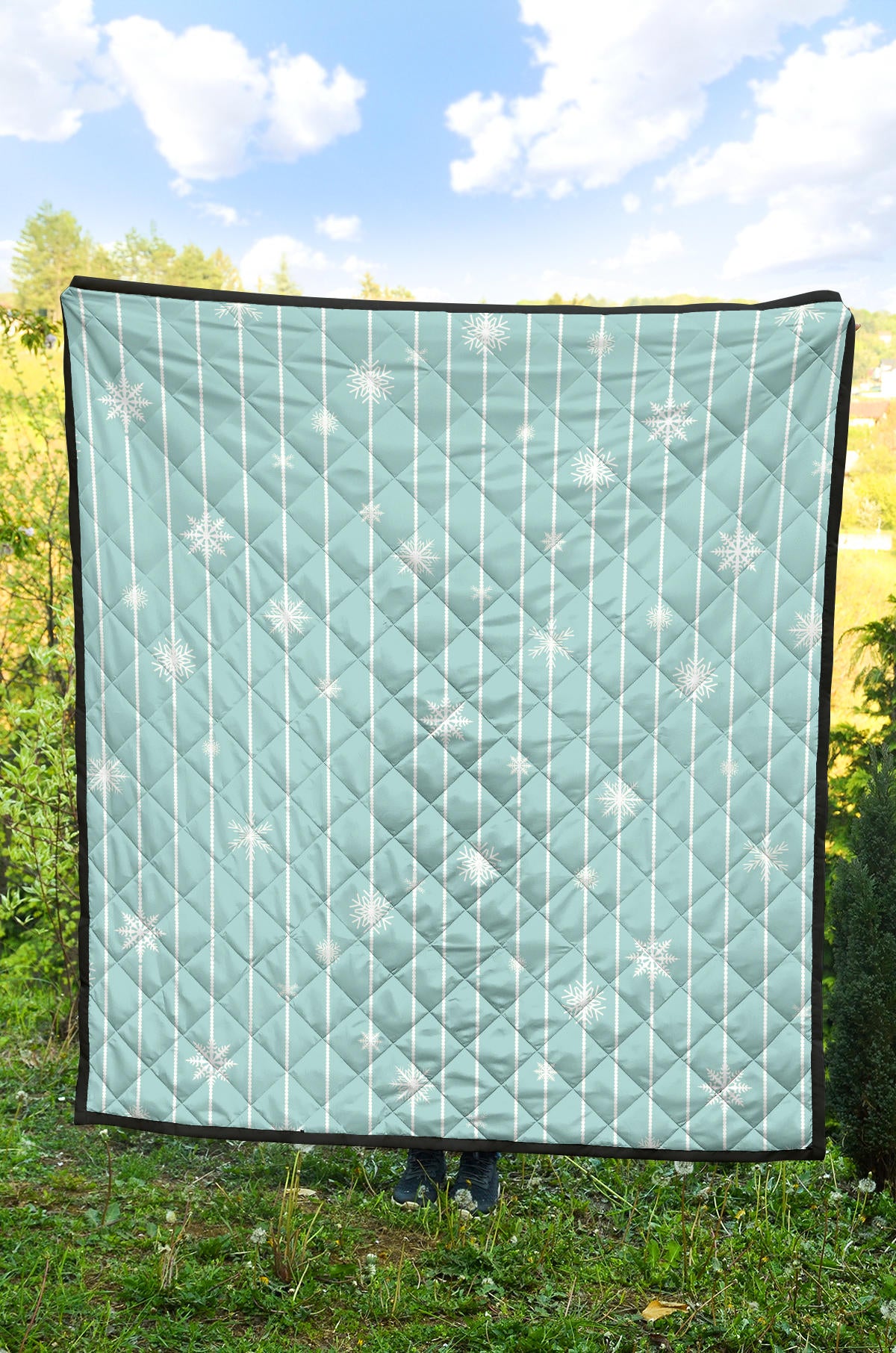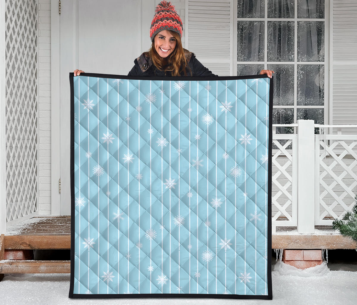 Snowflake Pattern Blue Stripe Background Premium Quilt is a uniqued design and limited item. It made to order, hand printed, and sewn with love in our factory.