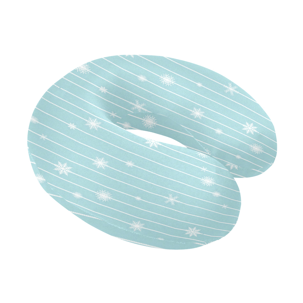 Snowflake pattern blue stripe background U-Shaped Travel Neck Pillow