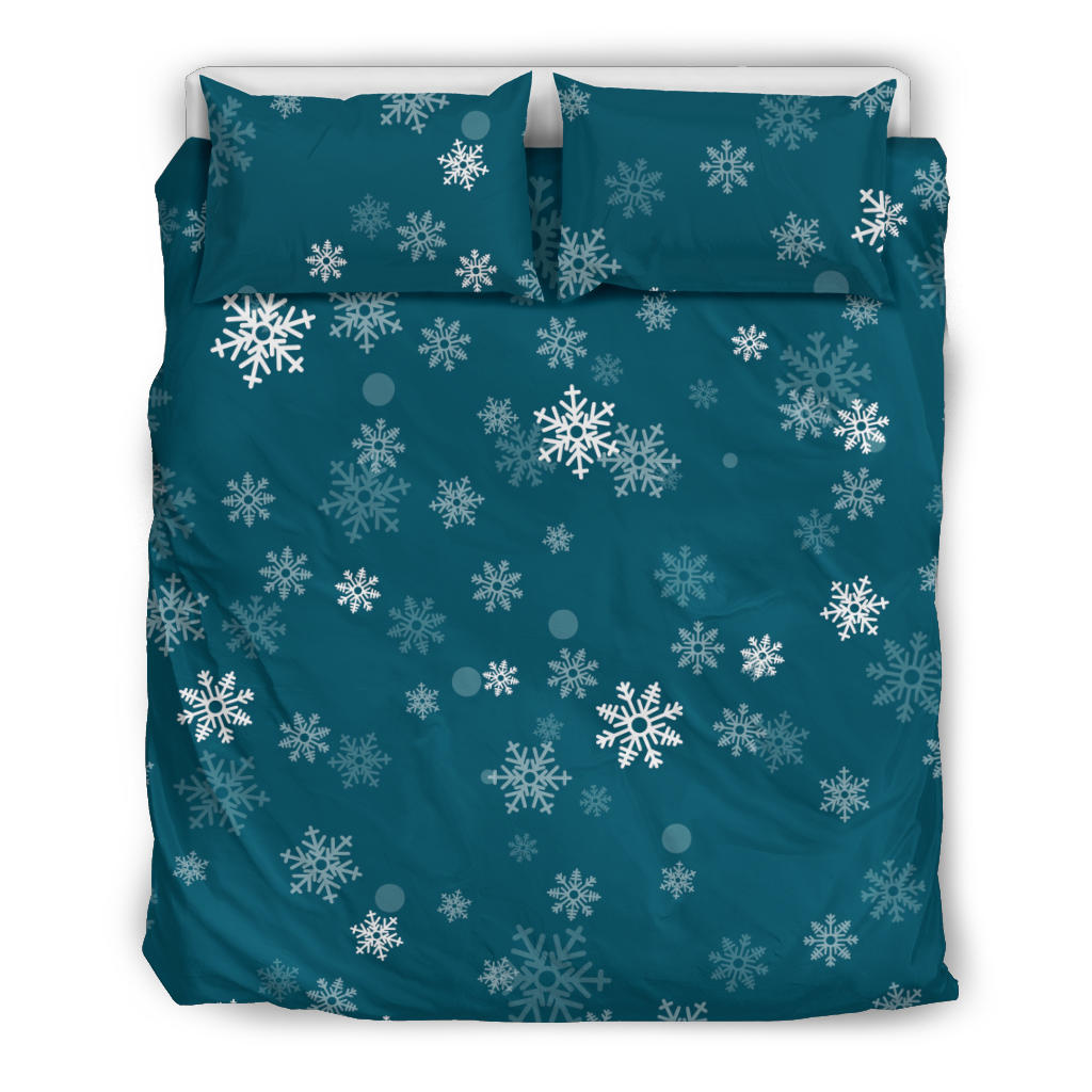 Snowflake pattern dark background Bedding Set is a uniqued design and limited item. It made to order, hand printed, and sewn with love in our factory.