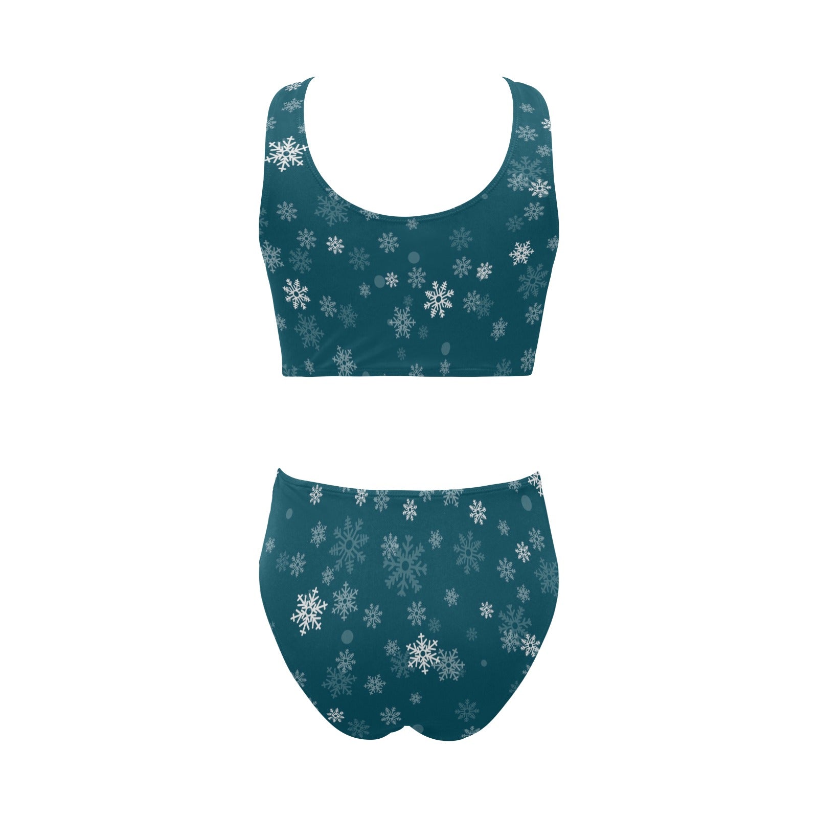 Snowflake pattern dark background Chest Bowknot High Waisted Bikini Swimsuit