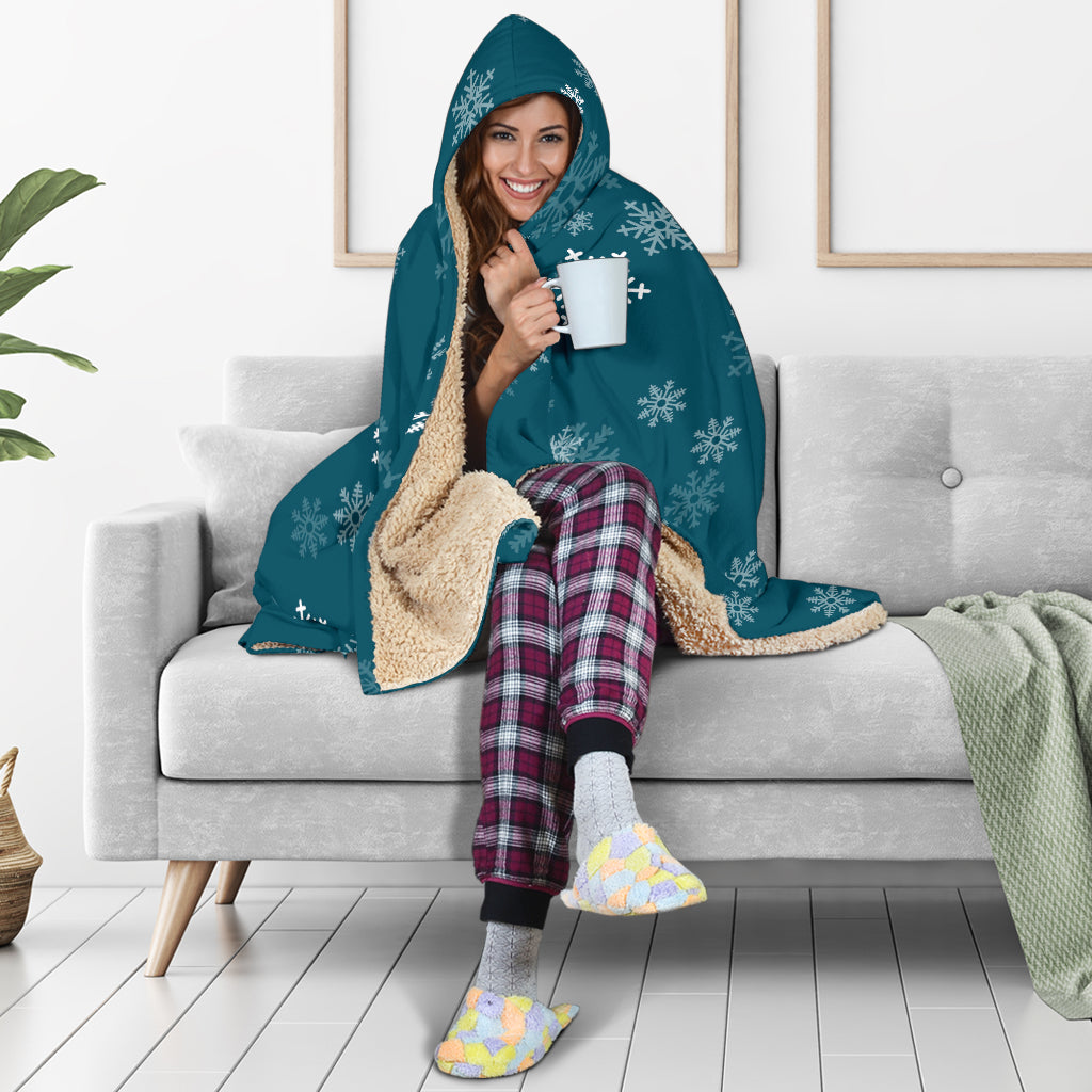 Snowflake pattern dark background Hooded Blanket are custom-made-to-order and handcrafted to the highest quality standards.