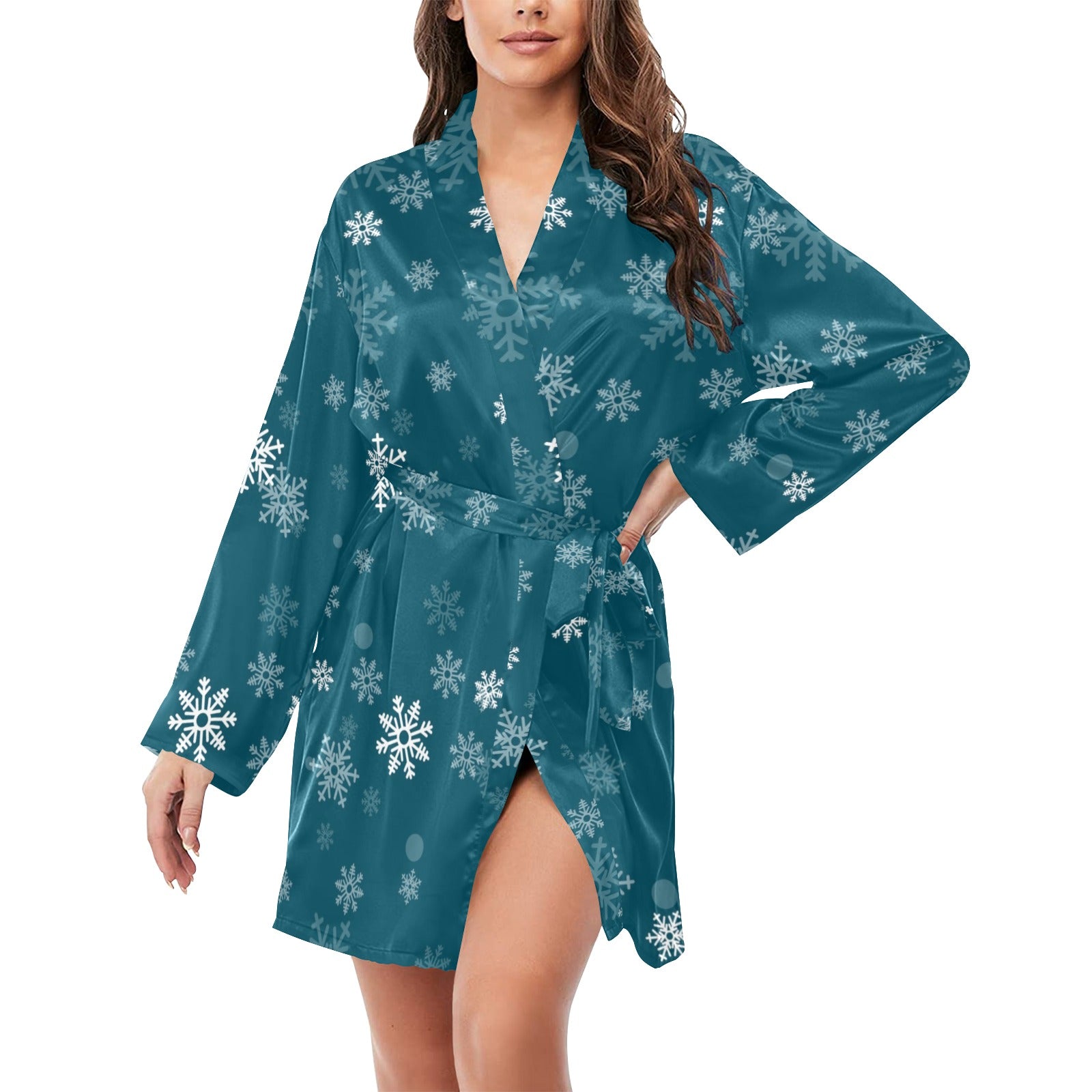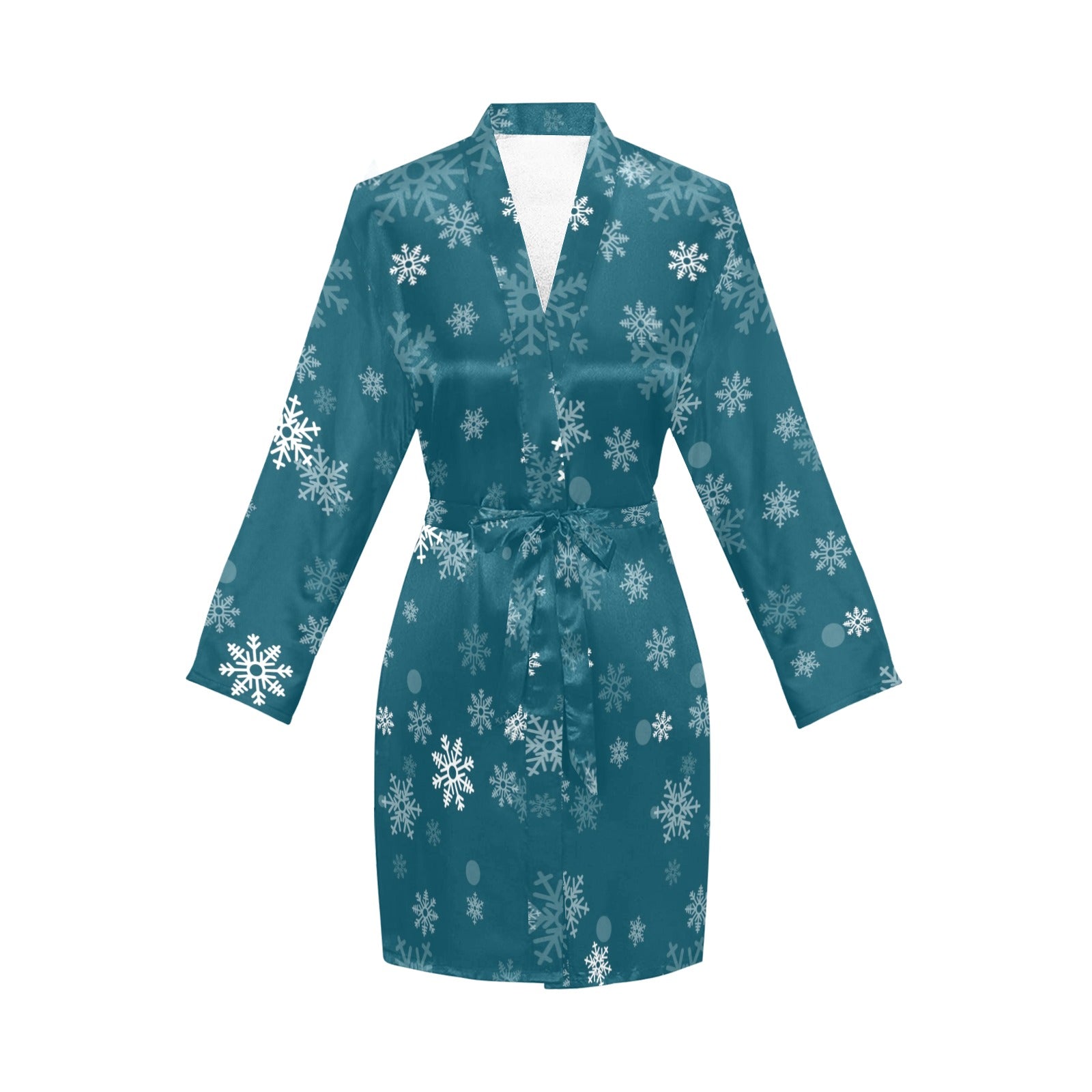 Snowflake pattern dark background Women's Long Sleeve Belted Night Robe