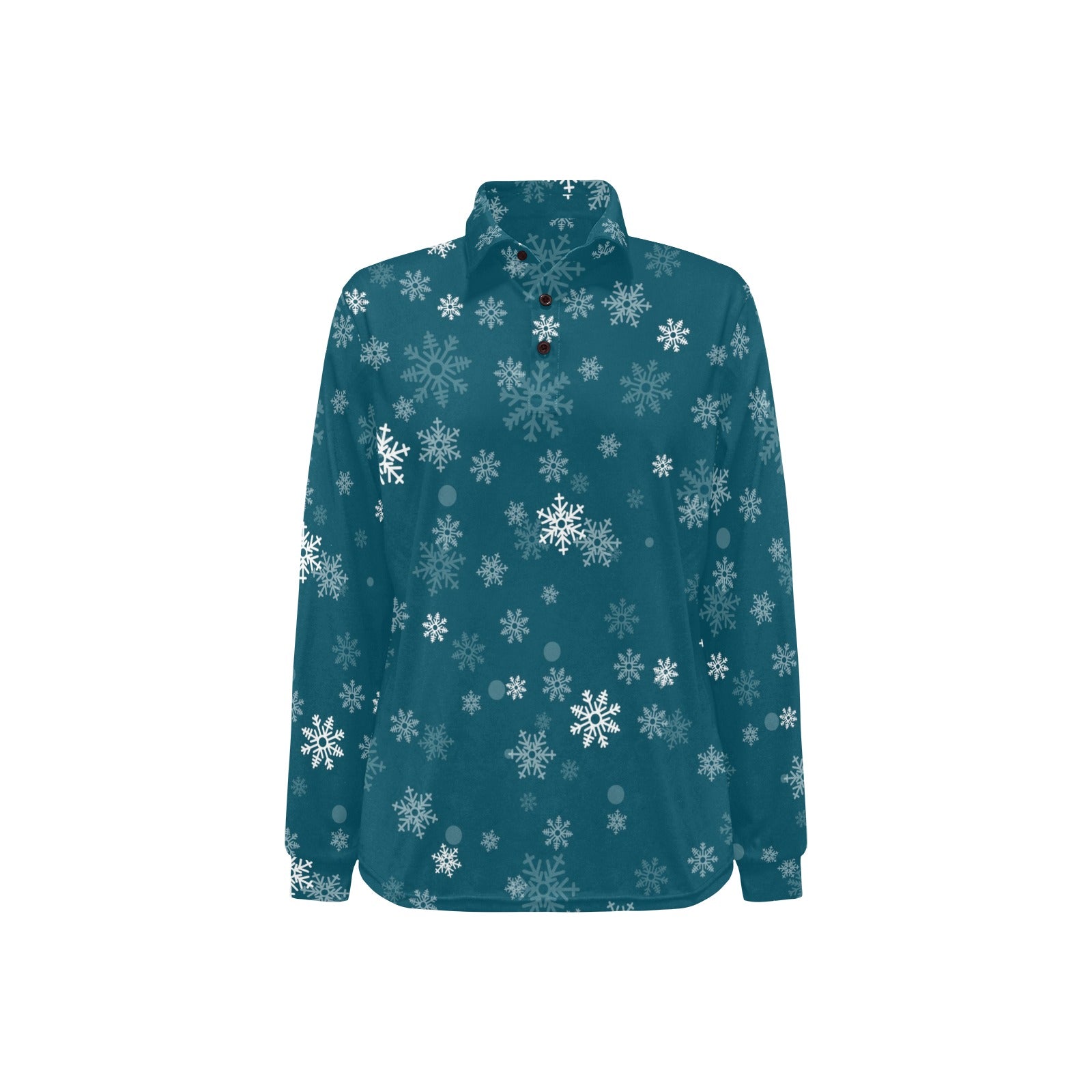 Snowflake pattern dark background Women's Long Sleeve Polo Shirt