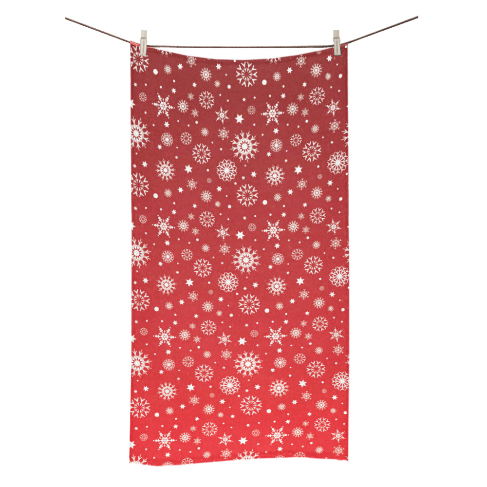 Snowflake pattern red background Bath Towel 30"x56" is a uniqued design and limited item. It made to order, hand printed, and sewn with love in our factory.