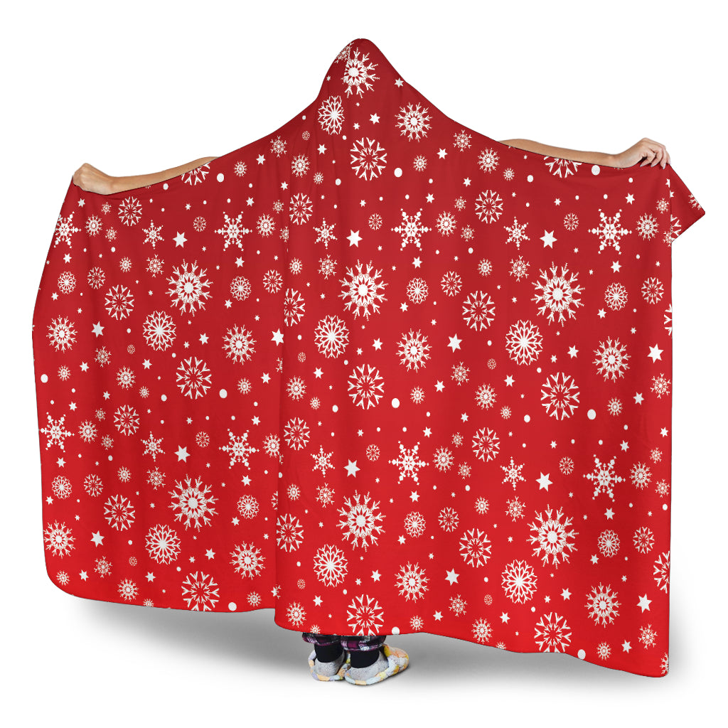 Snowflake pattern red background Hooded Blanket are custom-made-to-order and handcrafted to the highest quality standards.