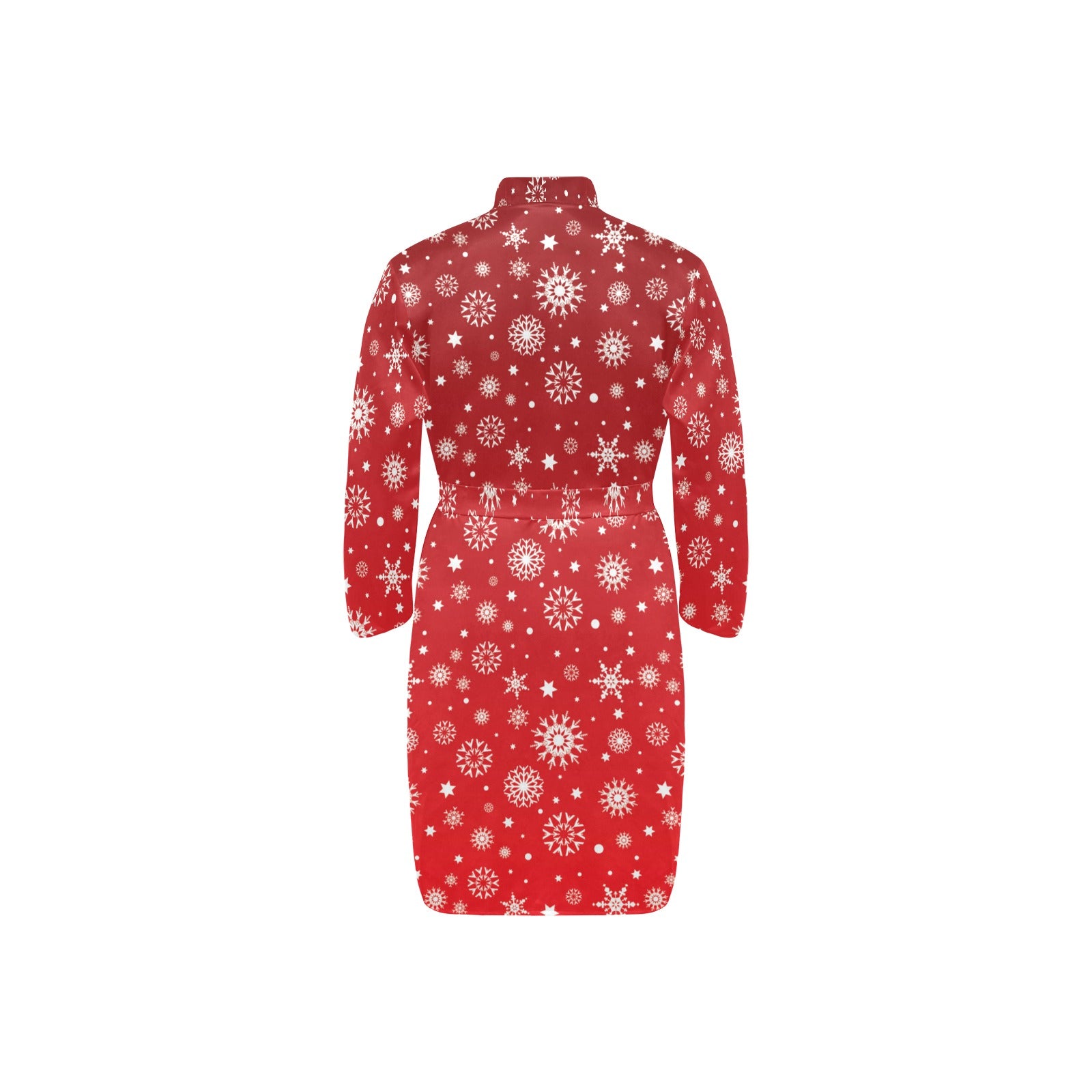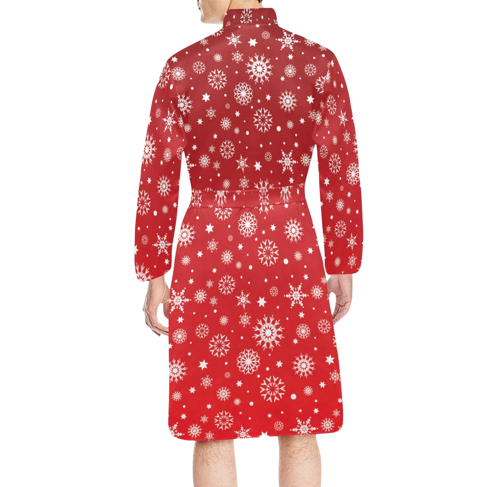 Snowflake pattern red background Men's Long Sleeve Belted Night Robe