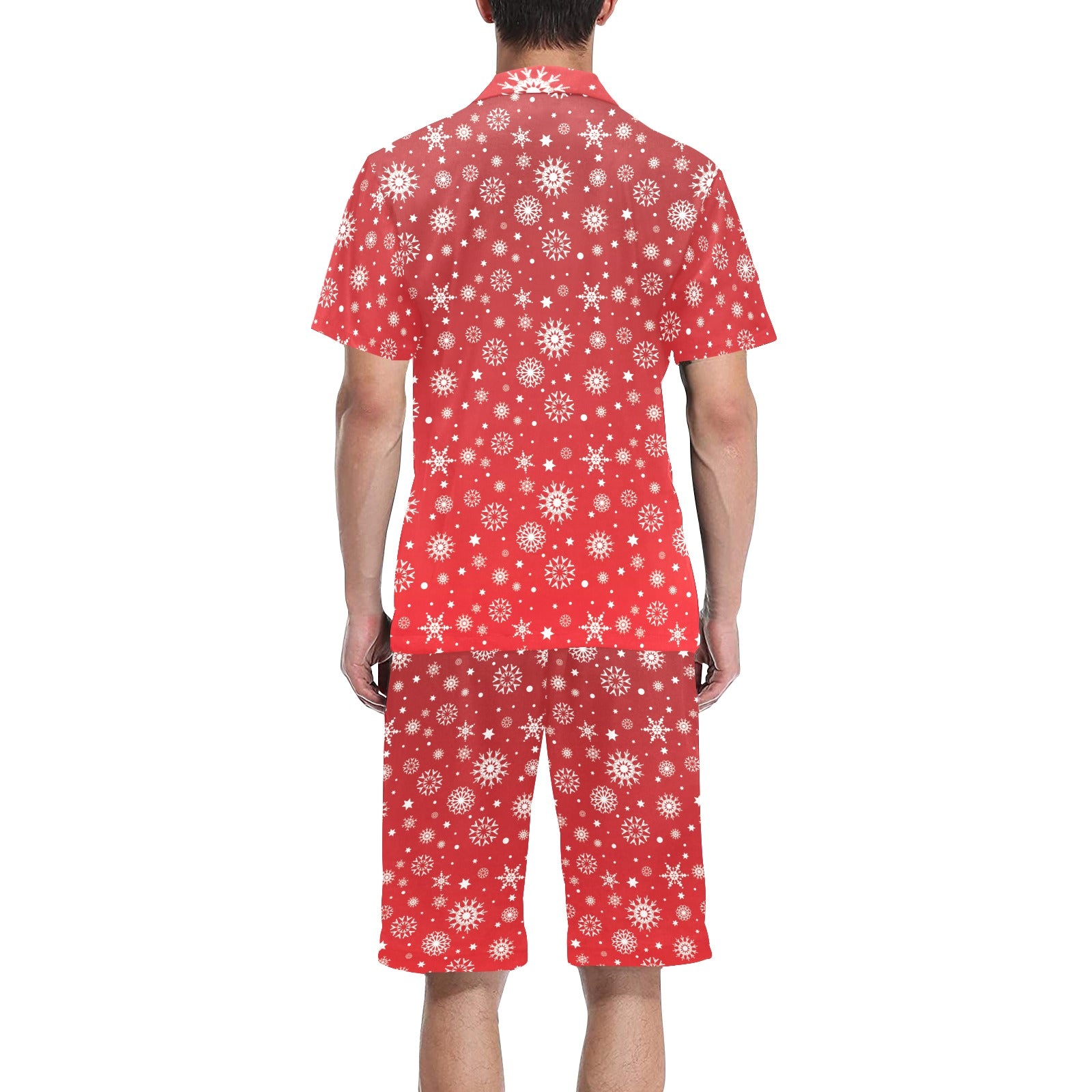 Snowflake pattern red background Men's V-Neck Short Pajama Set