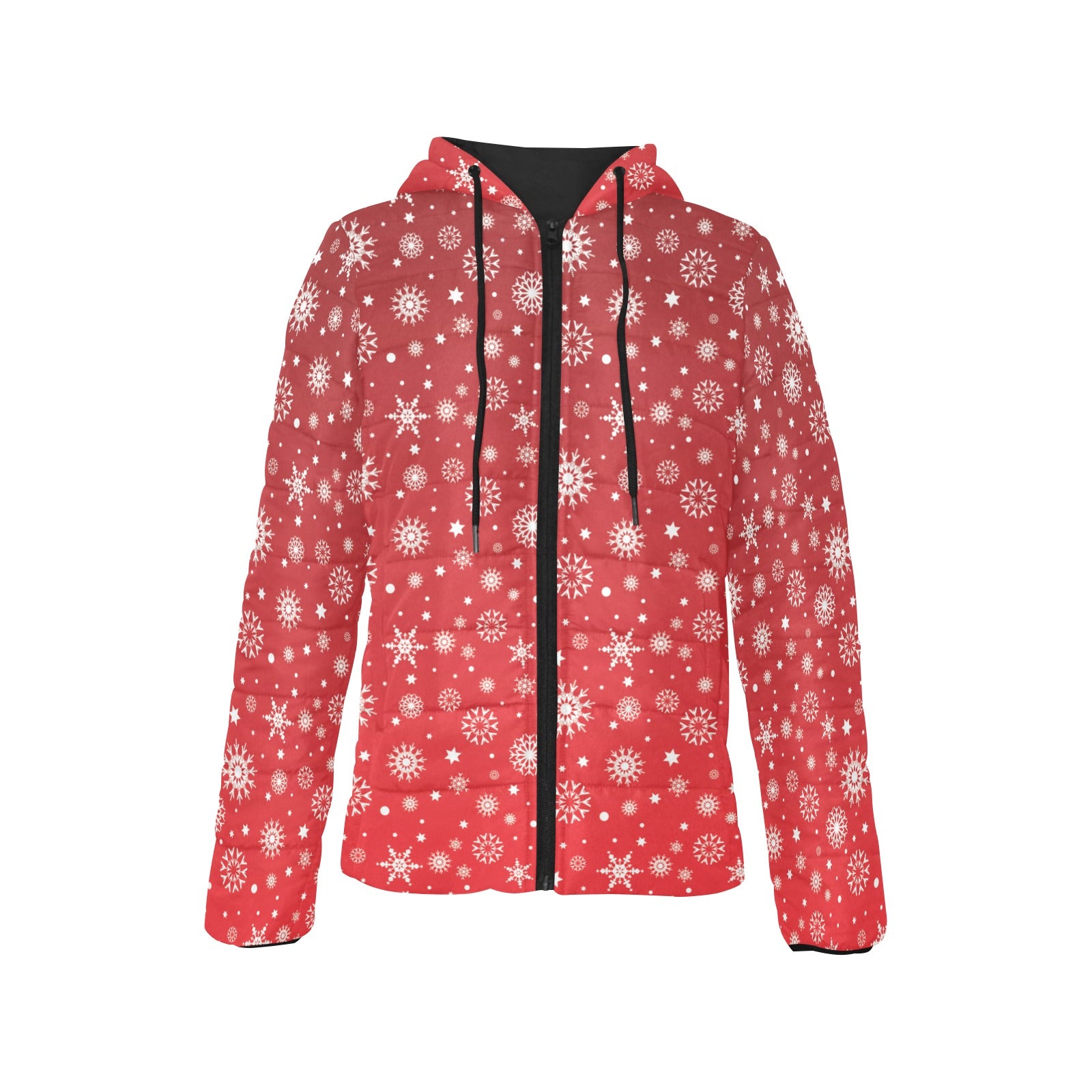 Snowflake pattern red background Women's Padded Hooded Jacket