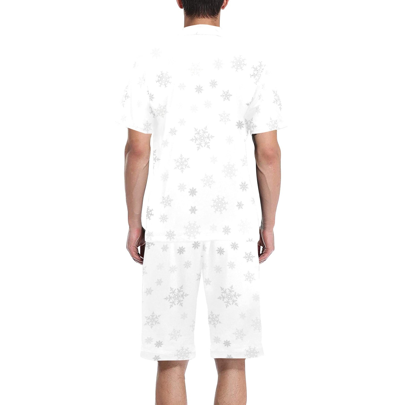 Snowflake pattern white background Men's V-Neck Short Pajama Set