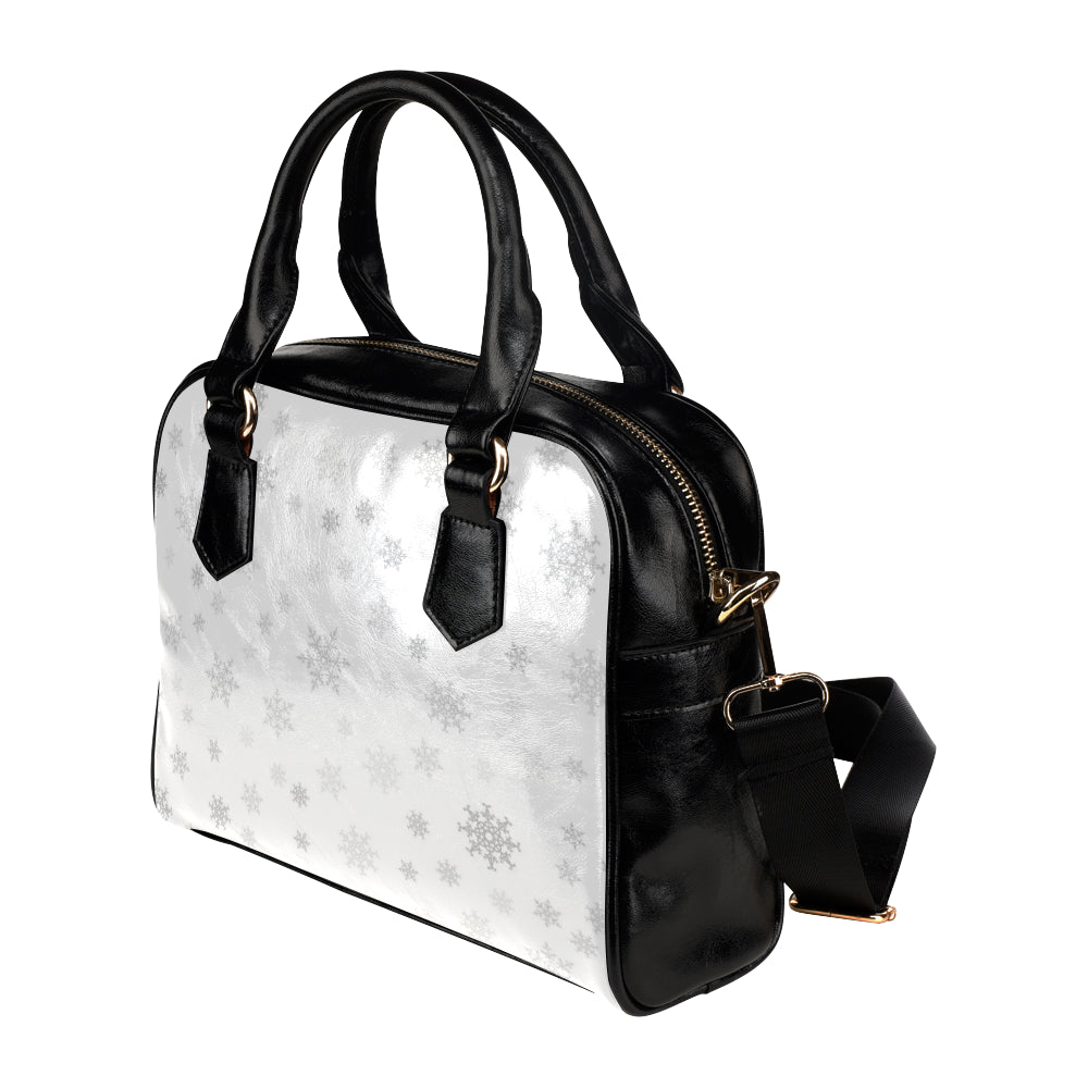 Snowflake pattern white background Shoulder Handbag is a uniqued design and limited item. It made to order, hand printed, and sewn with love in our factory.