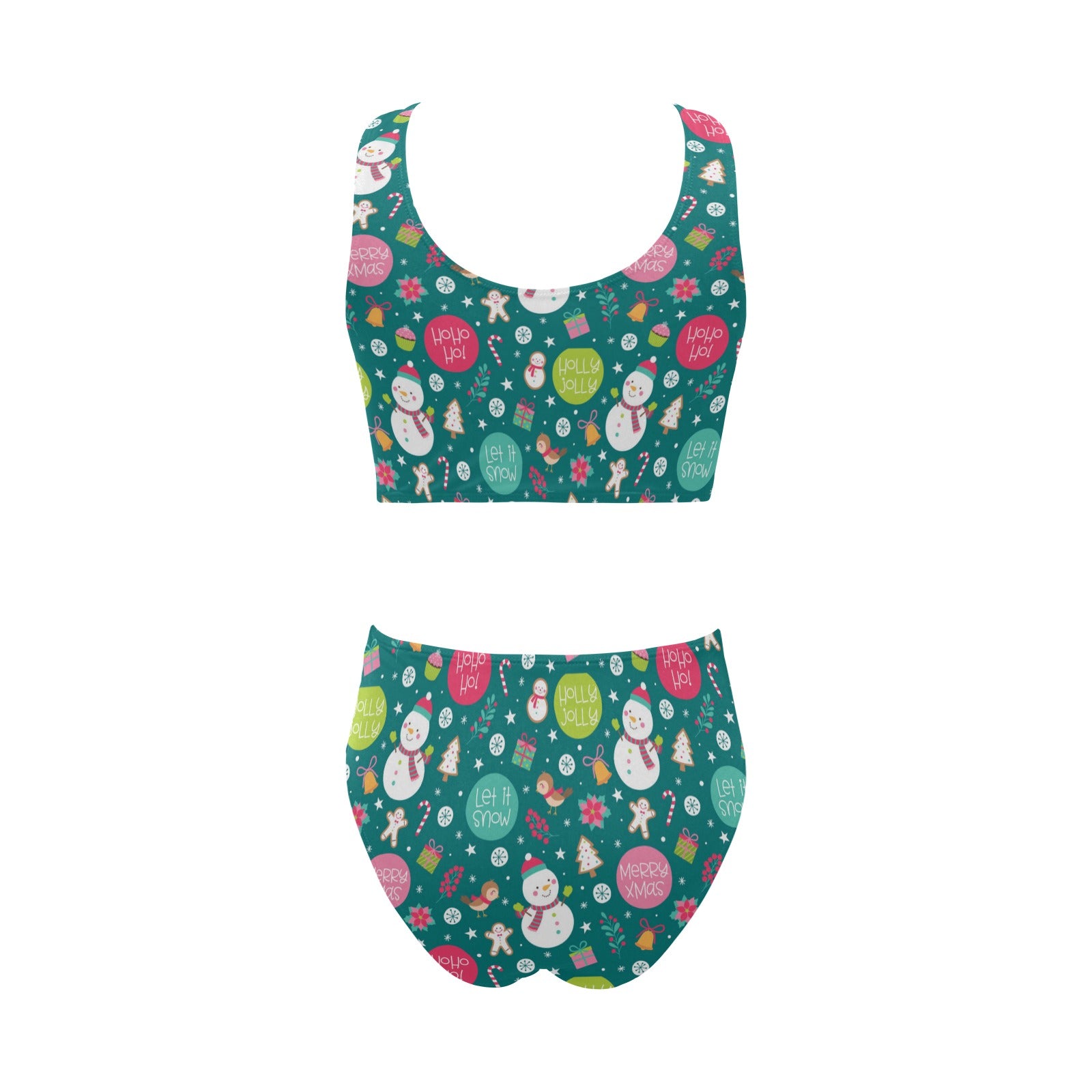 Snowman bird decorative elements christmas pattern Chest Bowknot High Waisted Bikini Swimsuit