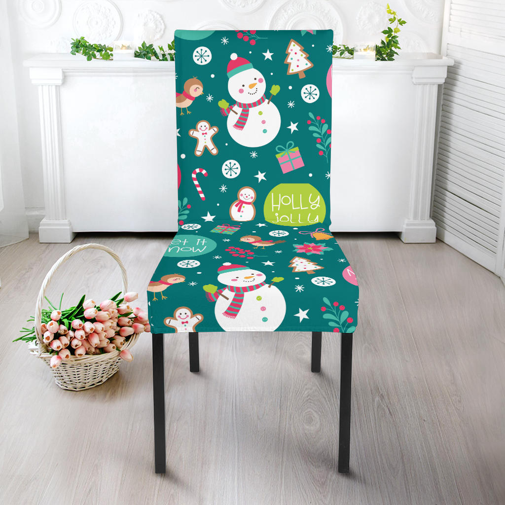 Snowman Bird Decorative Elements Christmas Pattern Dining Chair Slipcover