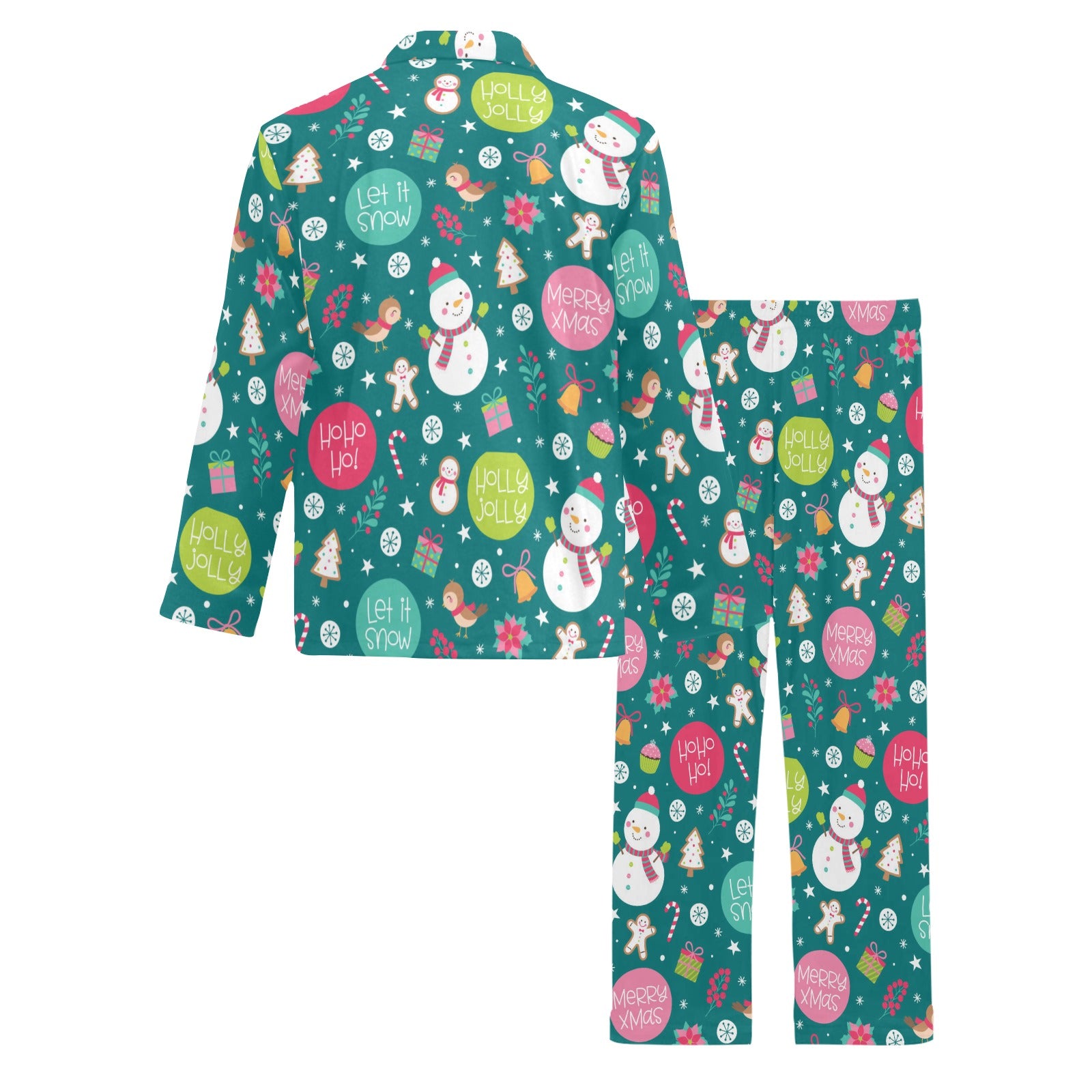 Snowman bird decorative elements christmas pattern Men's Long Pajama Set