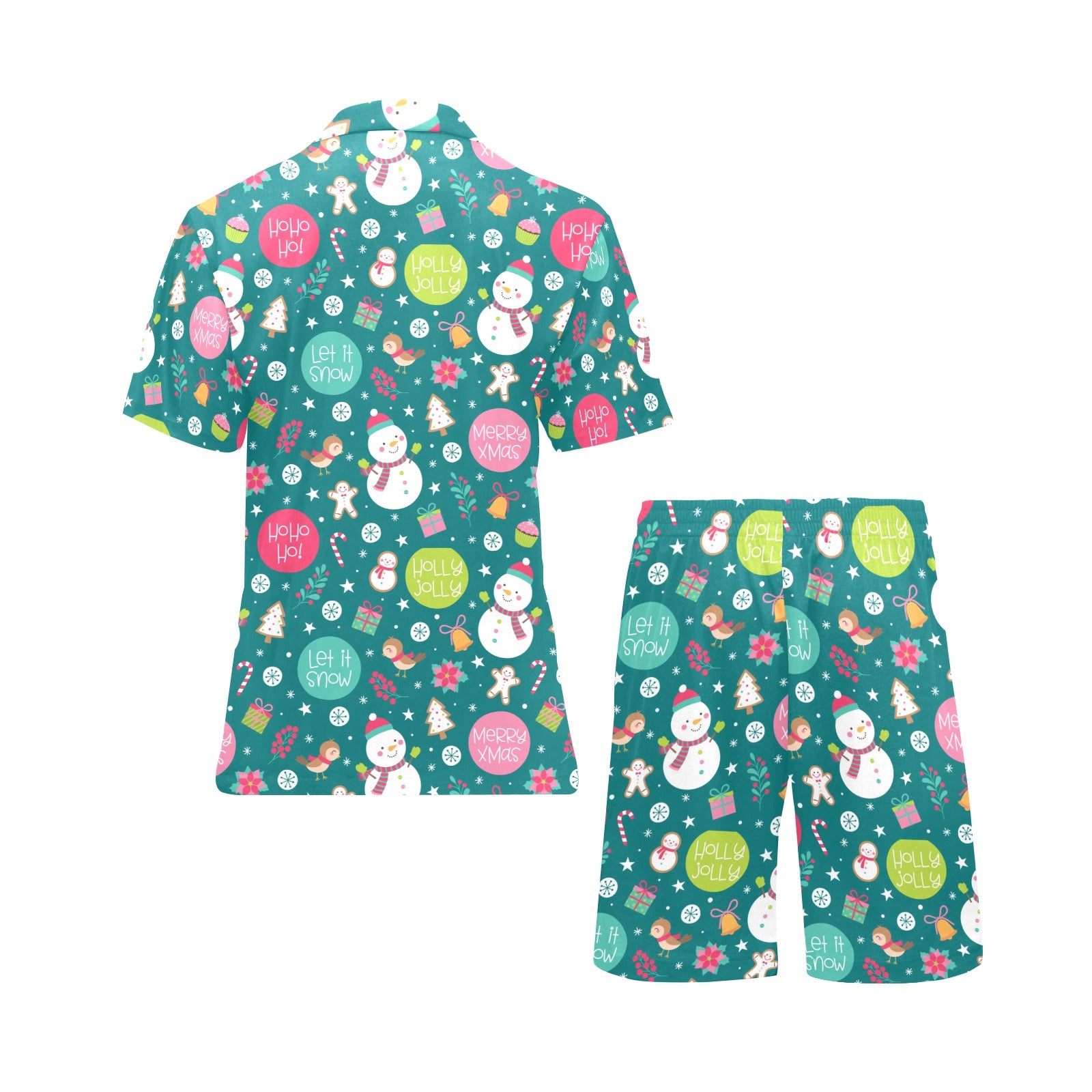 Snowman bird decorative elements christmas pattern Men's V-Neck Short Pajama Set